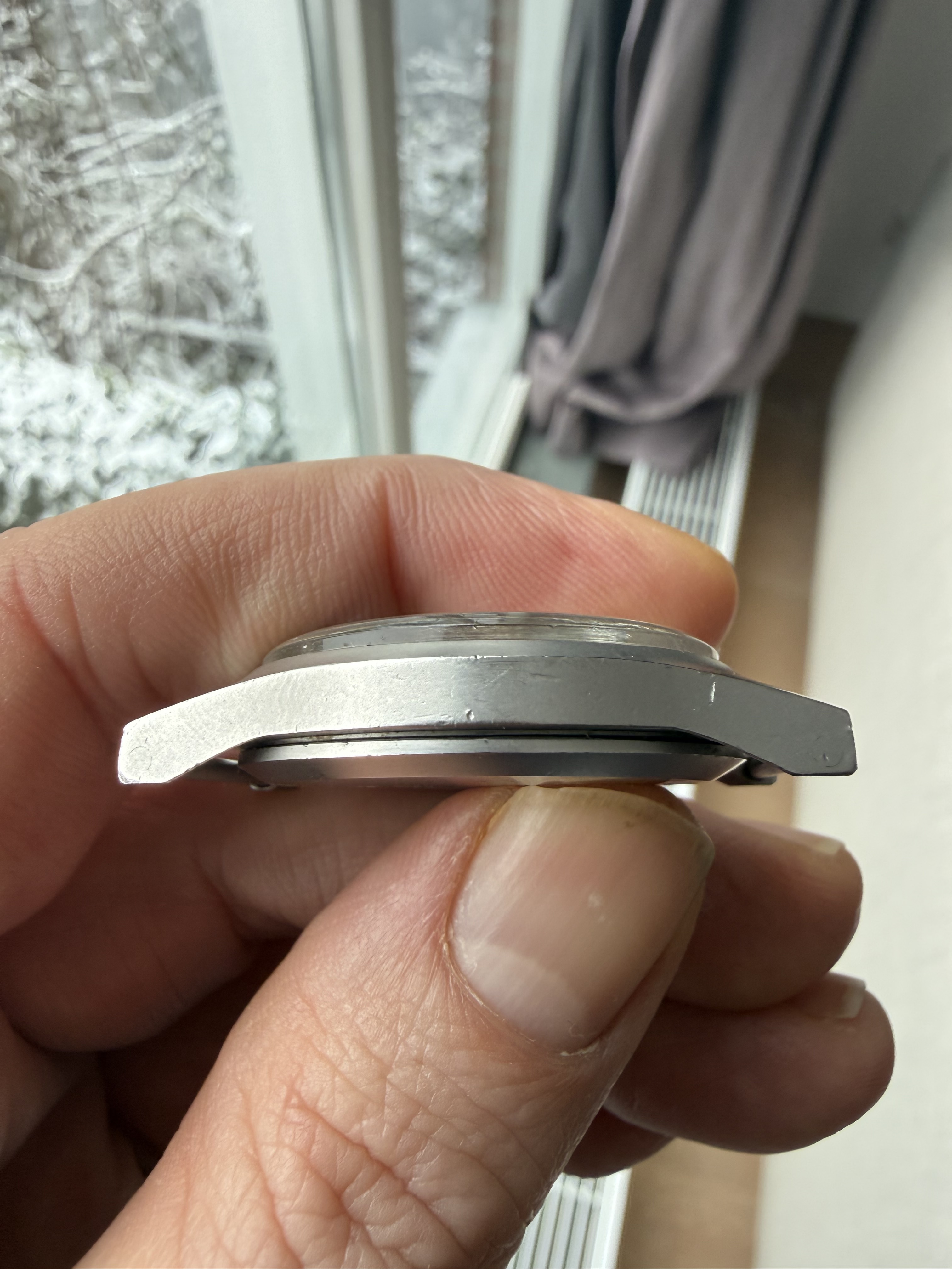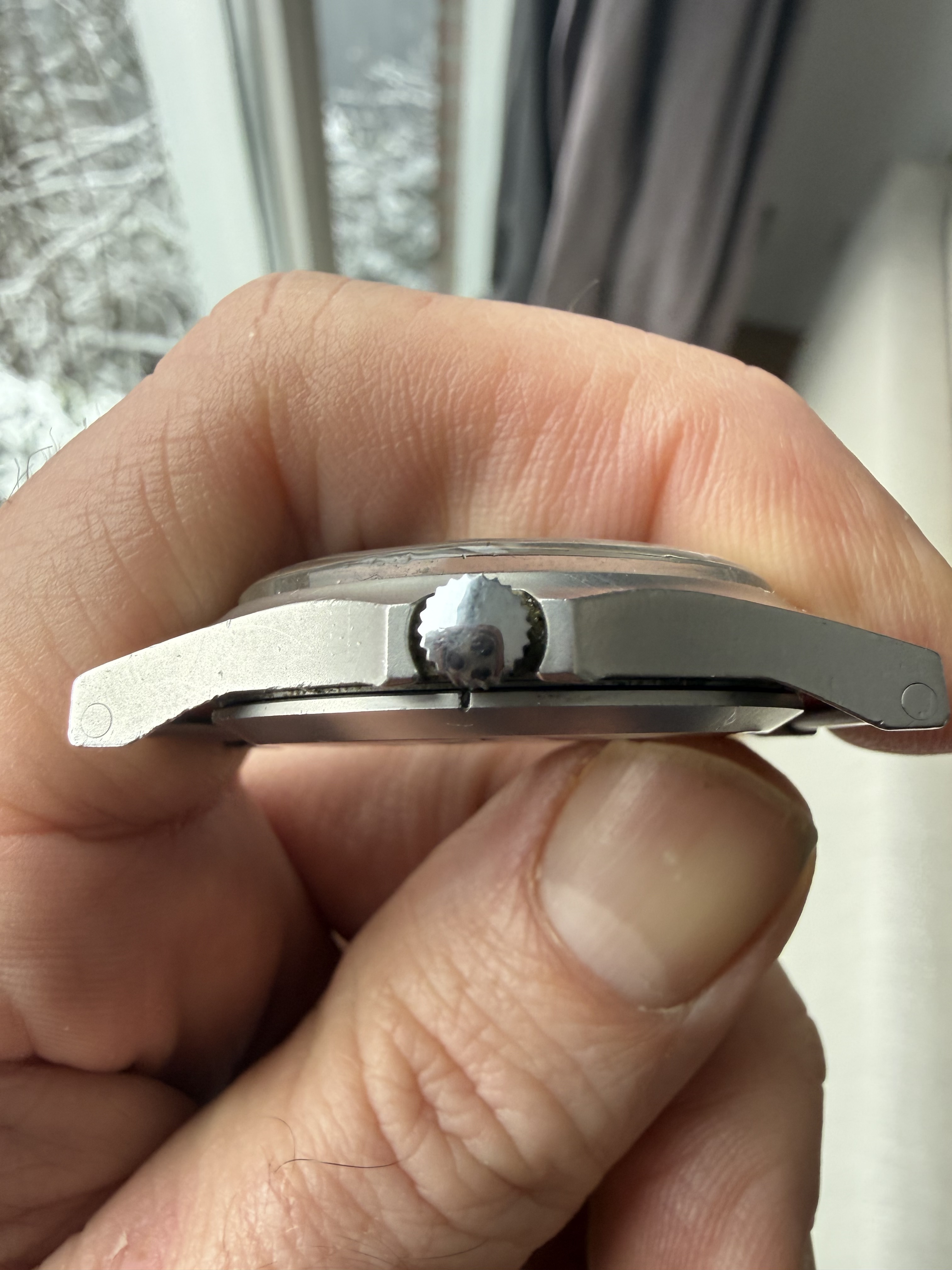 Ik heb een zwak voor deze dingen en als ik er eentje op de kop kan tikken doe ik dat. Dus ook deze. Let op: Er zit wat verkleuring op de wijzerplaat. Daarnaast zou ik het glas vervangen. Het quartzwerkje loopt prima, wat toch de hoogste kostenpost is als je deze wilt laten servicen. De kast is voor z’n leeftijd in mooie conditie. Mijn eigen plannen waren om of het glas te vervangen, seals en batterij vernieuwen en lekker te dragen of in de kast te laten liggen voor als ik er nog eens een keer een tegenkwam waarvan het uurwerk kuren vertoont. Maar stiekem heb ik of de tijd of de zin niet voor een van deze opties. Dus wellicht dat iemand anders hier enthousiast ervan wordt.