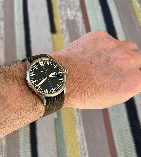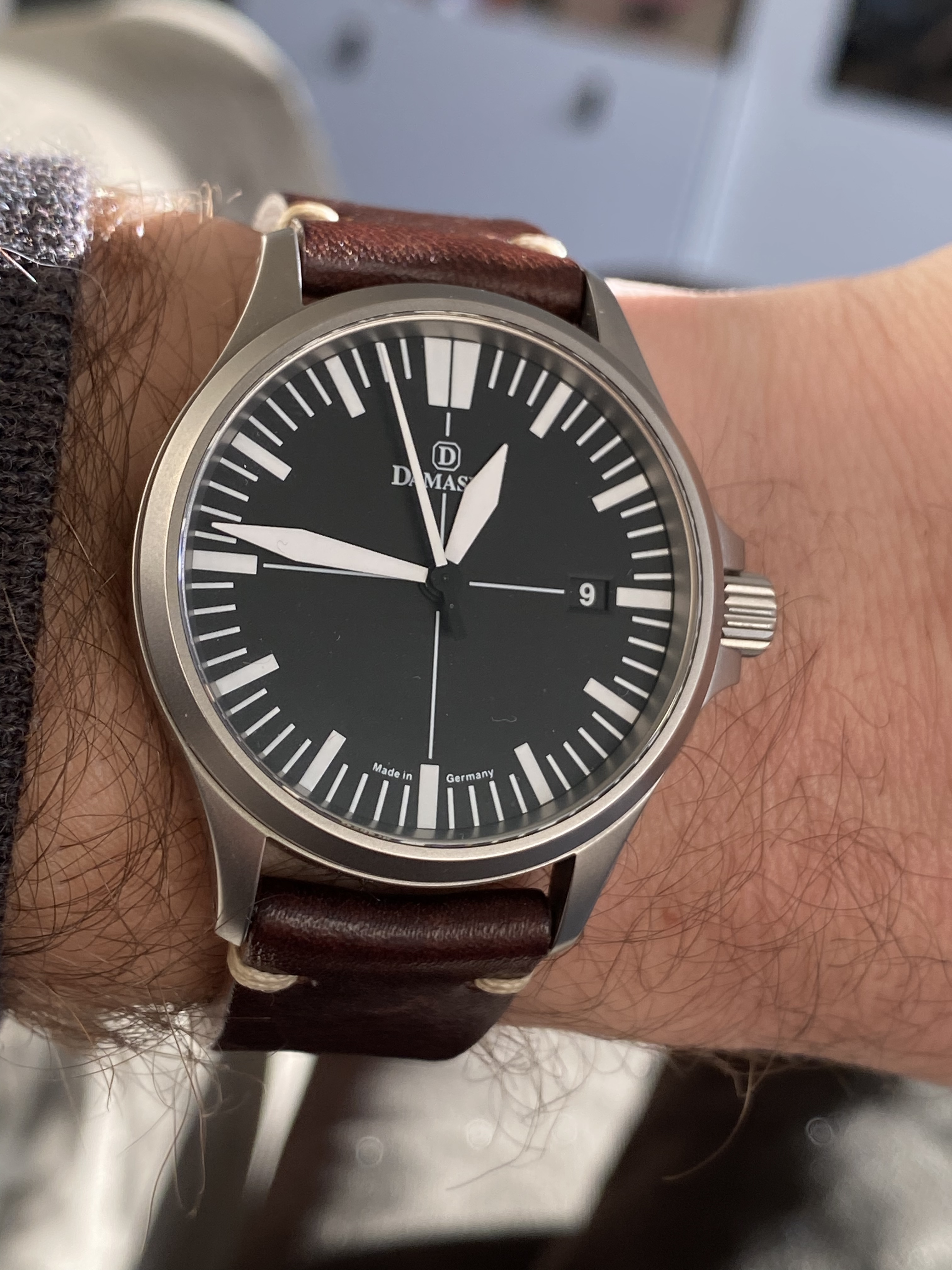 Op een plaatje om de pols van een ander vind ik dit erg mooi. Maar nooit in het echt gepast en wat me tegenhoudt is vooral de maat. 39mm. Ik vind voor mezelf 41 al de absolute ondergrens. En als ik mn U1 of UX afdoe en een 104 ga dragen, dan vind ik dat klein, laat staan verschil U1 44mm, Damasko.