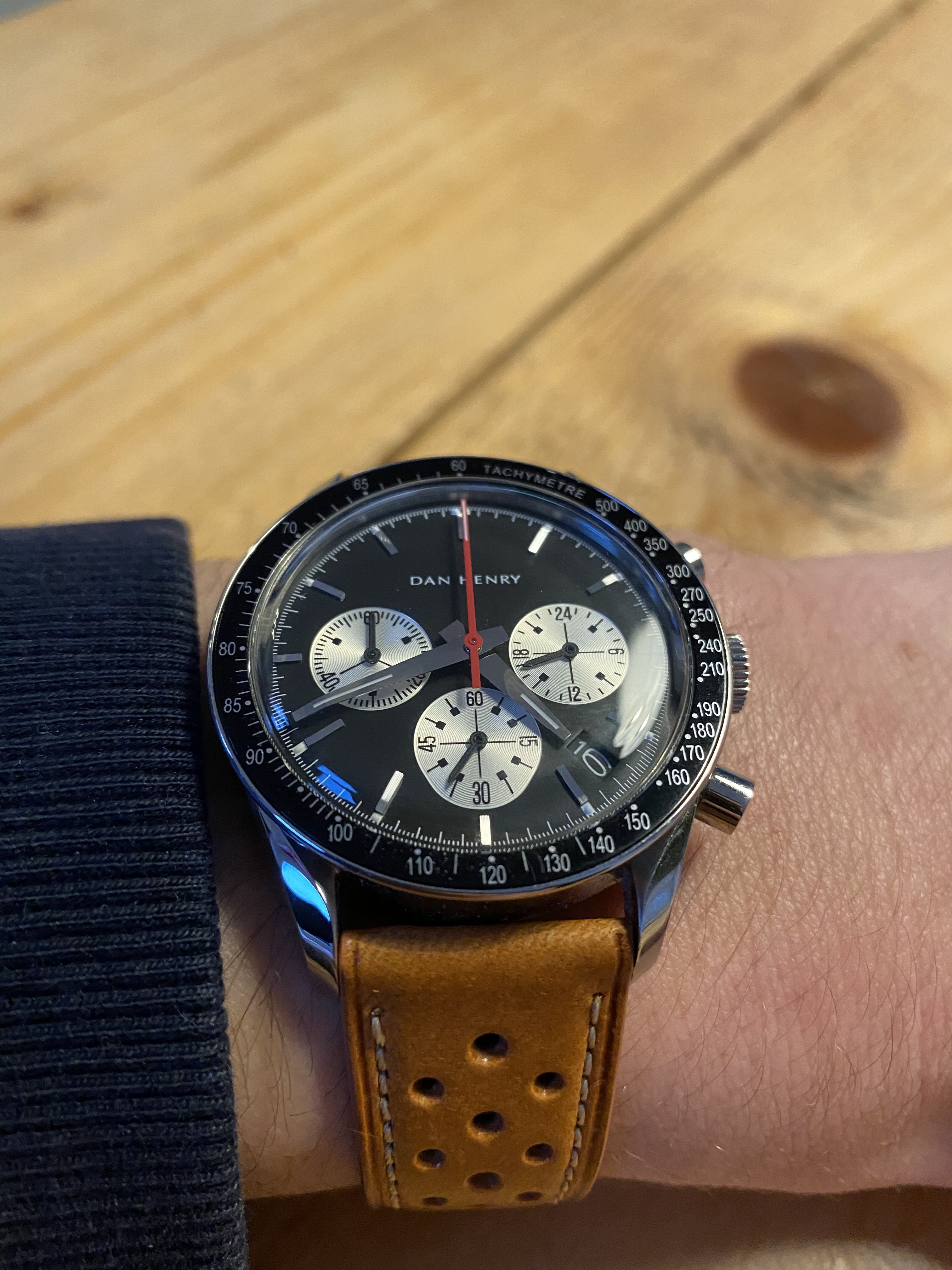 Ik heb zelf deze, waar nog een NA / review topic van komt als ik ook een leren bandje binnen heb. De Dan Henry 1964, evil panda, tri-compax, no date versie.
