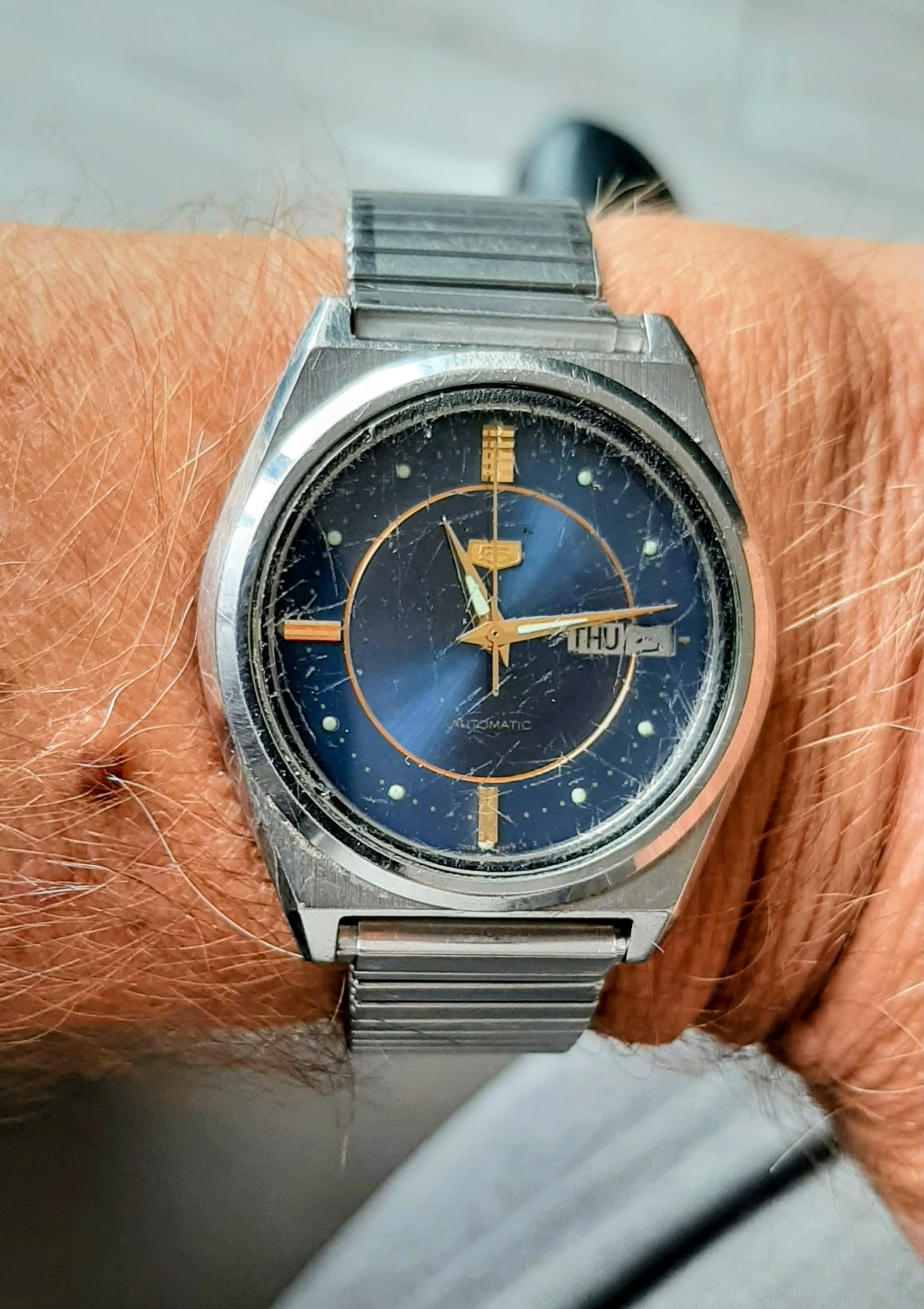Ik schat de kans groot dat het horloge uit 72/76 een ander horloge was. Misschien ook een blauwe Seiko. En dat dit de opvolger was die ergens in de 90s gekocht is. Waar het horloge uit 76 dan is, dat weet ik ook niet natuurlijk.