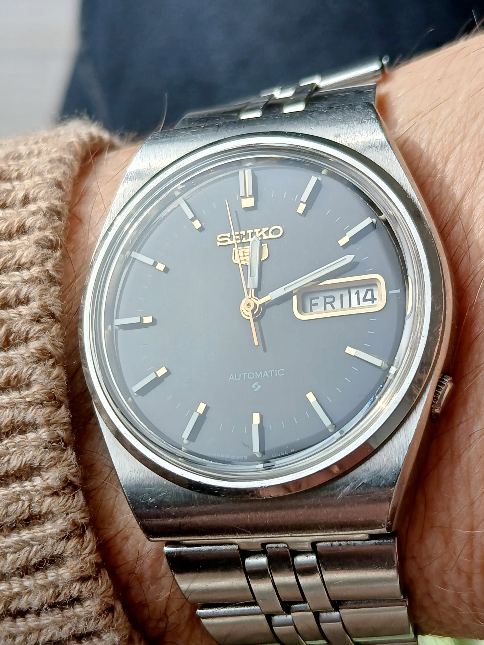 Ik waardeer dat jullie stevig op zoek zijn naar waarheidsvinding en vind het leuk dat jullie op mijn “tweede plaats lievelings seiko5” terecht zijn gekomen. Deze dateer ik zelf zo’n 10 jaar jonger en wel van februari 1981, ondanks dat deze is uitgevoerd in plexi in plaats van hardlex. Dit horloge is nog maar kort in mijn bezit en is een erfstuk van mijn schoonvader. Het horlogeglas was aangetast door lijm. Ik heb dit vervangen door een ander glaasje. Dus optie 1 valt voor mij af. Ik heb in mijn leven slechts 1 horloge van vrouwlief gehad en ook zij is er van overtuigd dat zij mij dit in 1976 heeft geschonken en bestrijdt ten stellichste dit ooit omgeruild te hebben voor een recenter exemplaar. Optie 2 valt voor mij weer af. Optie 3 liijkt mij niet waarschijnlijk want dan zou ik dat zelf toch moeten weten, nietwaar? Even 2 fotootjes van het optie 1 horloge (van mijn schoonvader) voor opknappen door mij en de caseback die jullie willen zien voordat ik jullie graag opmerkzaam maak op wat mij is opgevallen aan mijn eigen Seiko5 uit '72 of zoals koekoek zegt uit '92.