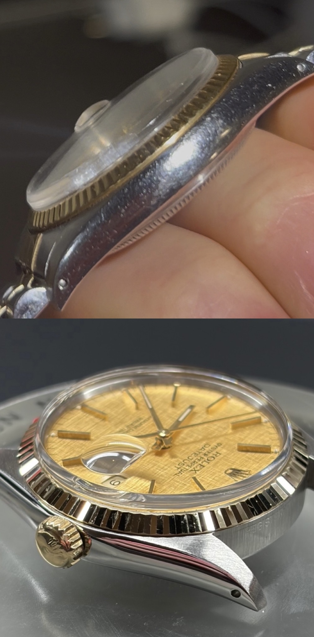 Vandaag mijn horloge opgehaald bij The Watch Service Zwolle waar Max mijn 16013 heeft gepolijst en jubilee revisie heeft uitgevoerd. Bezel ook recut. Wat vinden jullie er van? Hoop mensen vinden dat vintage afgedragen mag zijn, en ja dat vind ik ook, maar aangezien ik dit horloge in mijn collectie ga houden wilde ik hem toch eens netjes laten maken…