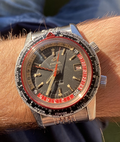 Het voelt trouwens best wel lekker om eens een keer de beste te zijn. Normaal maak ik daar geen gewoonte van. Ik heb nog lang getwijfeld of het zou lukken, want Wilko @wbcoupe zat me voortdurend op de hielen. Ik moet ook toegeven dat ik wel in de krochten van mijn collectie heb moeten duiken om dit resultaat te halen en nu ik ze allemaal zo bij elkaar zie (kijk de foto hieronder) ben ik er zelf ook een beetje verbaasd over. Helemaal als ik me realiseer dat door de beperking van Chris om geen horloges van vóór 1965 toe te laten ik me nog heftig heb moeten inhouden. Want anders was, geloof me maar 't is echt waar, de hoeveelheid nog zeker twee keer zo groot geweest met het tonen van de vintage horloges, die bij mij voornamelijk uit de periode 1950 -1965 zijn. Maar dat is dan misschien een ideetje voor volgend jaar zomer. Dan wel graag zonder geïnspireerd te zijn door verveling vanwege Corona toestanden natuurlijk.
