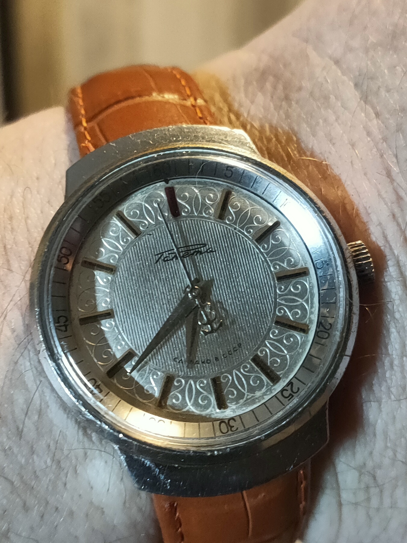 Een Raketa met 2609HA uurwerkje en een prachtige wijzerplaat (Nu is de 2609HA niet zo uniek, maar de uitvoering van het horloge wel)