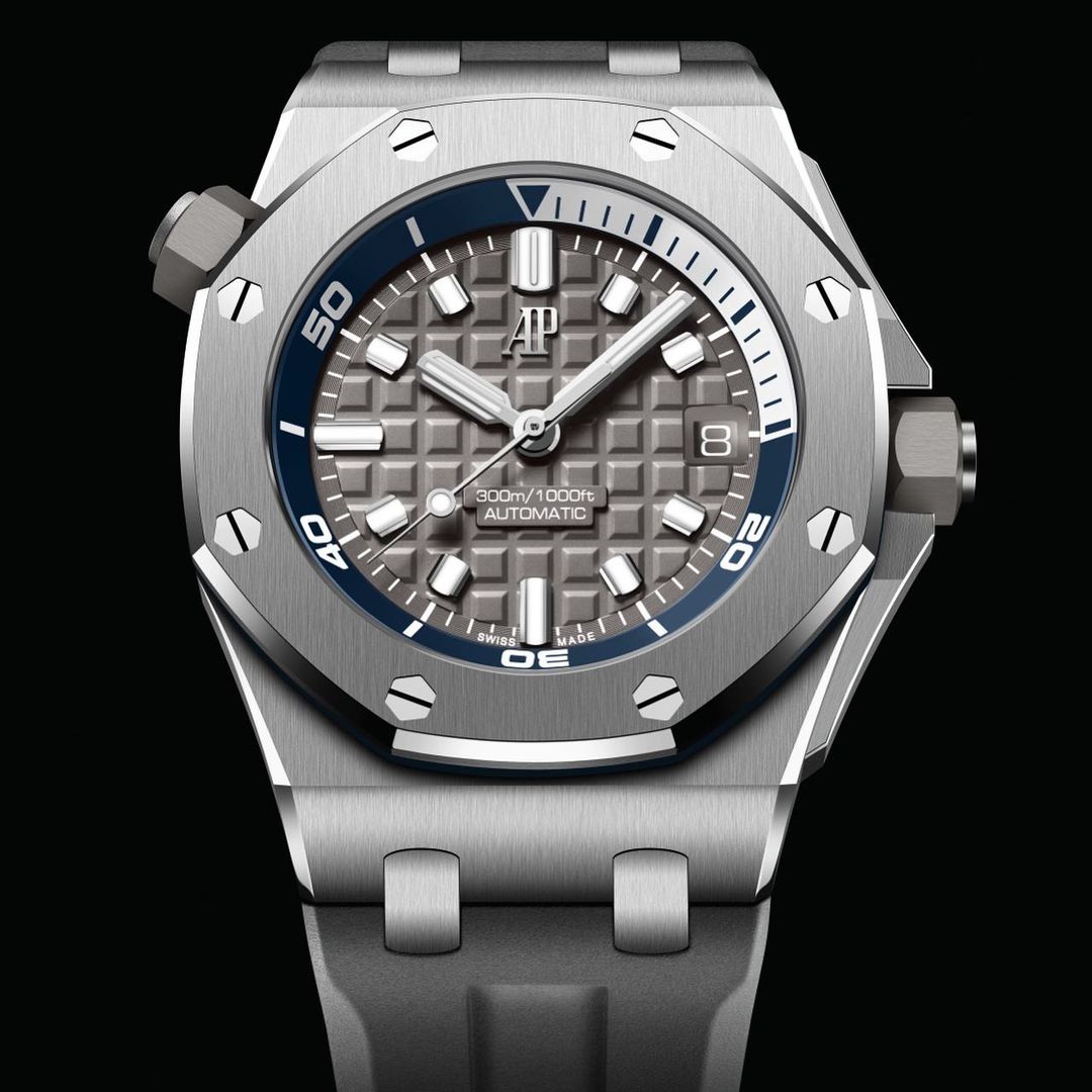 Ik zag dat Audemars Piguet de Royal Oak nu ook als duiker uitbrengt. De AP RO duiker heeft een nieuw uurwerk namelijk de 4308 met een gangreserve van 60 uur. De AP RO duiker heeft een er van 300 meter. De maten zijn 42 mm en 14.1 mm hoog. Je kunt hem krijgen in grijs, navy en groen.