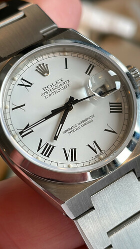Een oysterquartz in een scherpe conditie blijft het allermooiste om te zien, daarbij komen de lijnen en vormen van de kast en band nog beter naar buiten en dit laat ze echt stralen!
