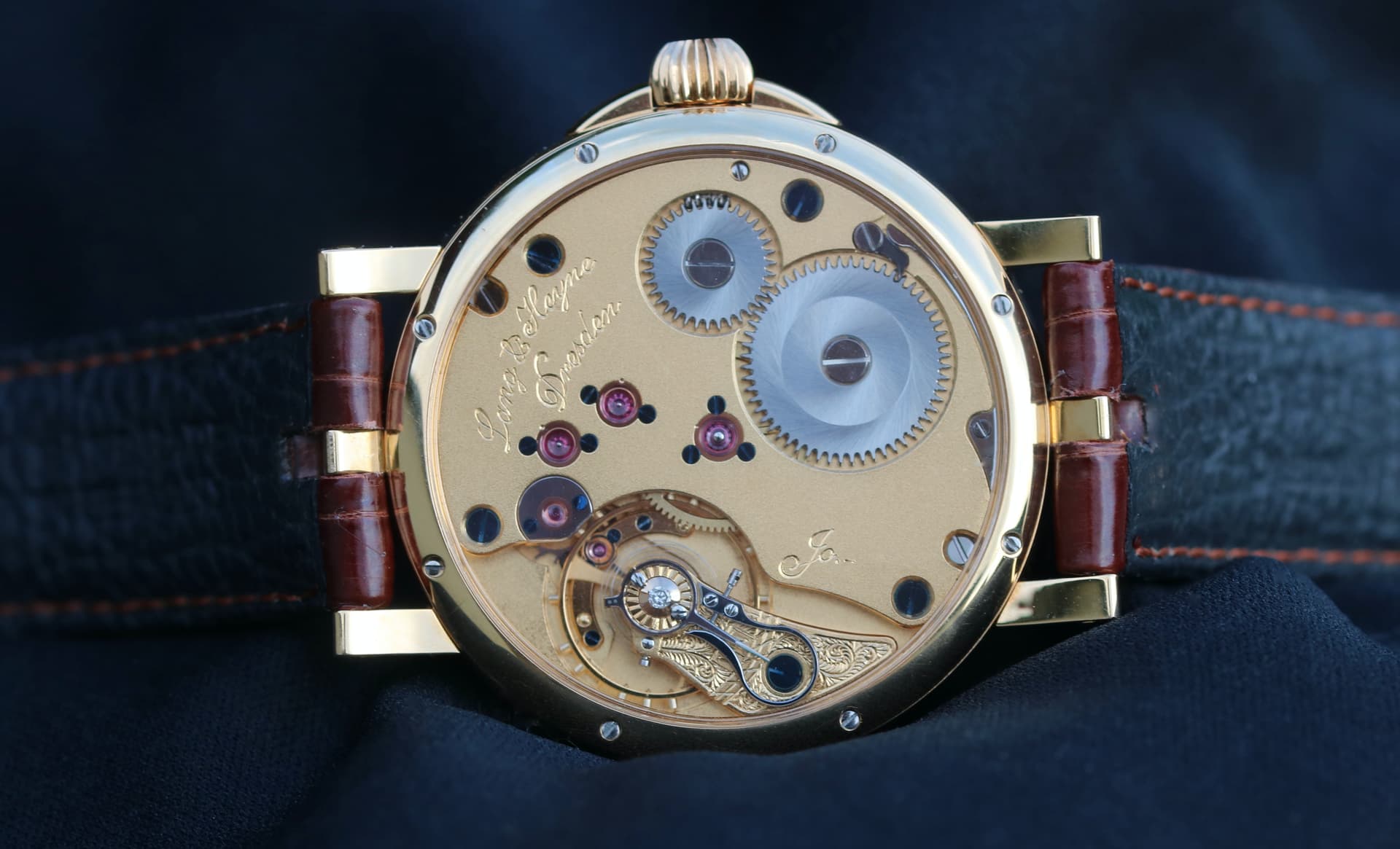 Mouvement dat opzet eerste zich simpel lijkt omwille van de dreiviertel platine maar als je gaat zien naar de afwerking van de visjes, gold chatons, balance cock enzovoort besef je al snel dat dit top niveau is.