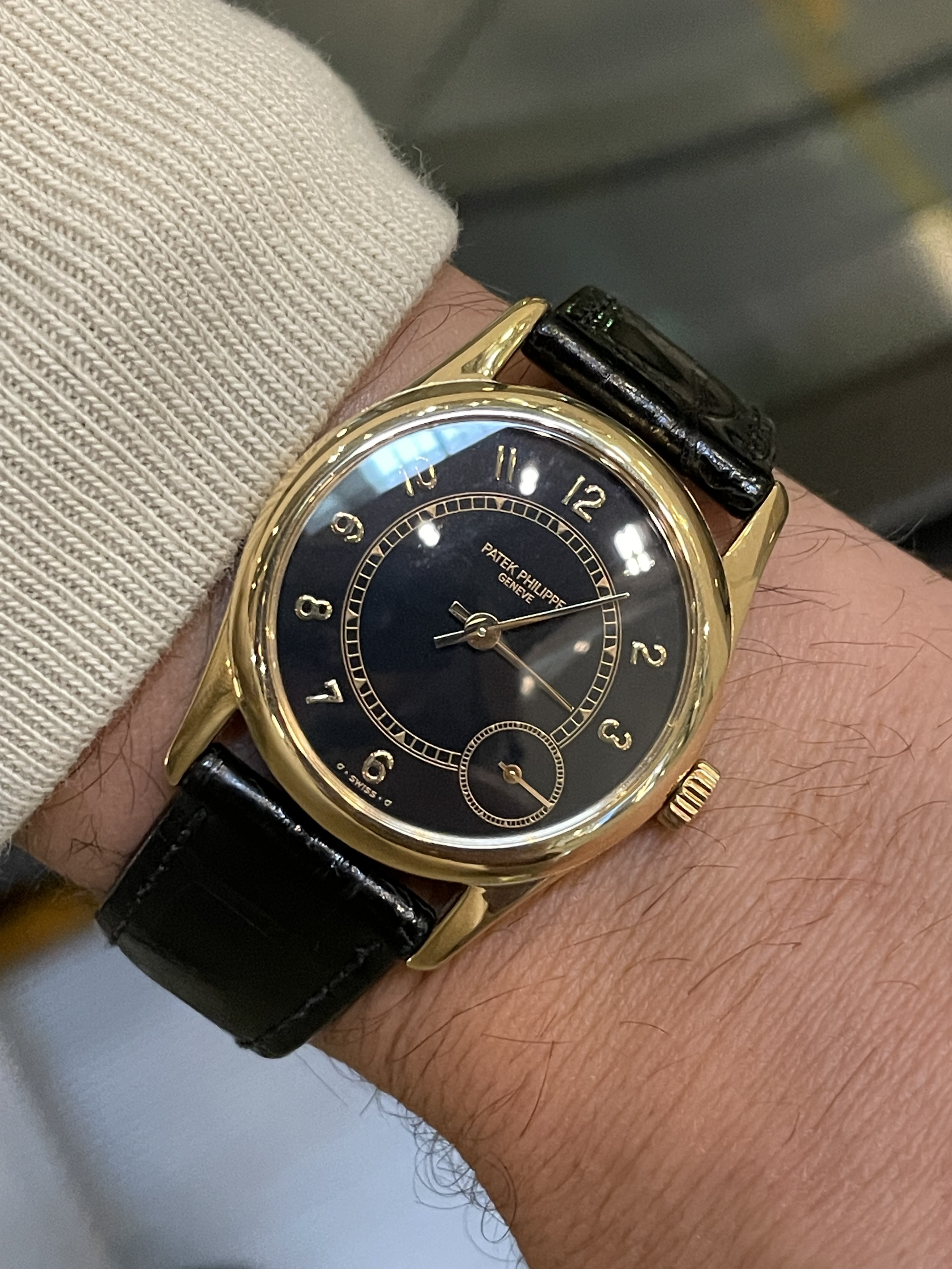 Tjah, als het om de puristische uitleg van een edelmetalen, time-only, hooguit een ps als complicatie, handopwinder in edelmetaal en van bescheiden afmetingen op croco… dan heeft deze alles wel zo’n beetje wat mij betreft. (Nog) duurder of chiquer hoeft van mij niet en eigenlijk vind ik een JLC UT ook meer dan prima was het niet voor de datum of maan fase.