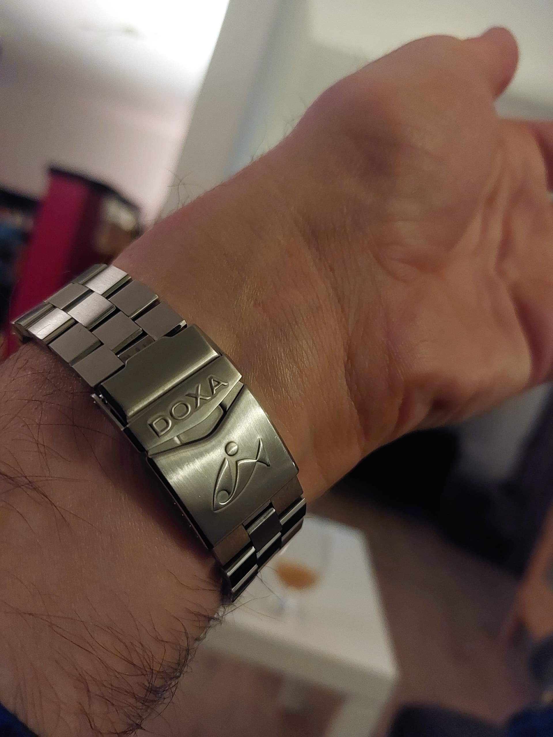 Ik vind het doxa logotje (die vis dus) zo mooi. En dan die vlakverdeling van glimmend en mat, met die scherpe vouw. Super classy gedaan dit. Lijkt simpel, maar die details zijn echt heel gaaf.