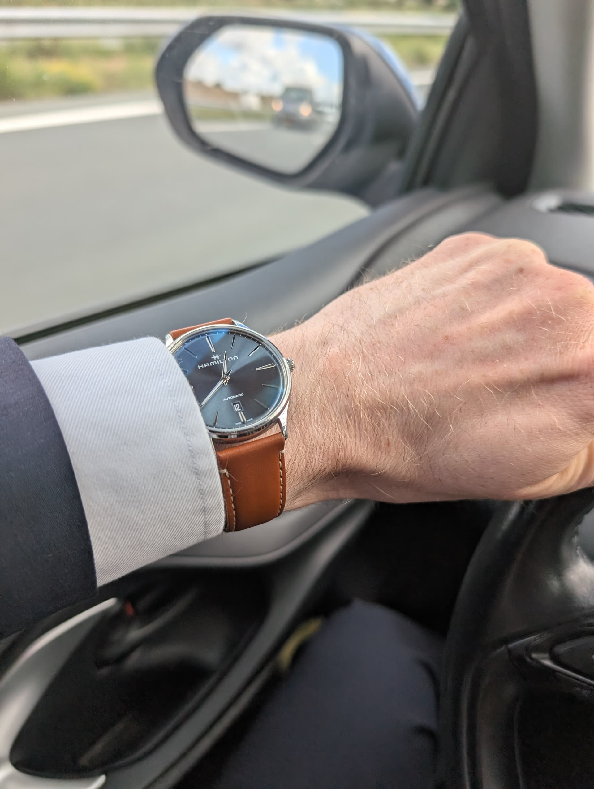 Een weinig aangehaald, maar wat mij betreft ondergewaardeerd horloge: de Hamilton Jazzmaster thinline auto. Lekker dun, geen nummers, wel met datum (maar niet erg opvallend), geen secondwijzer of over de top lume en vooral zeer betaalbaar (gezien sommige alternatieven