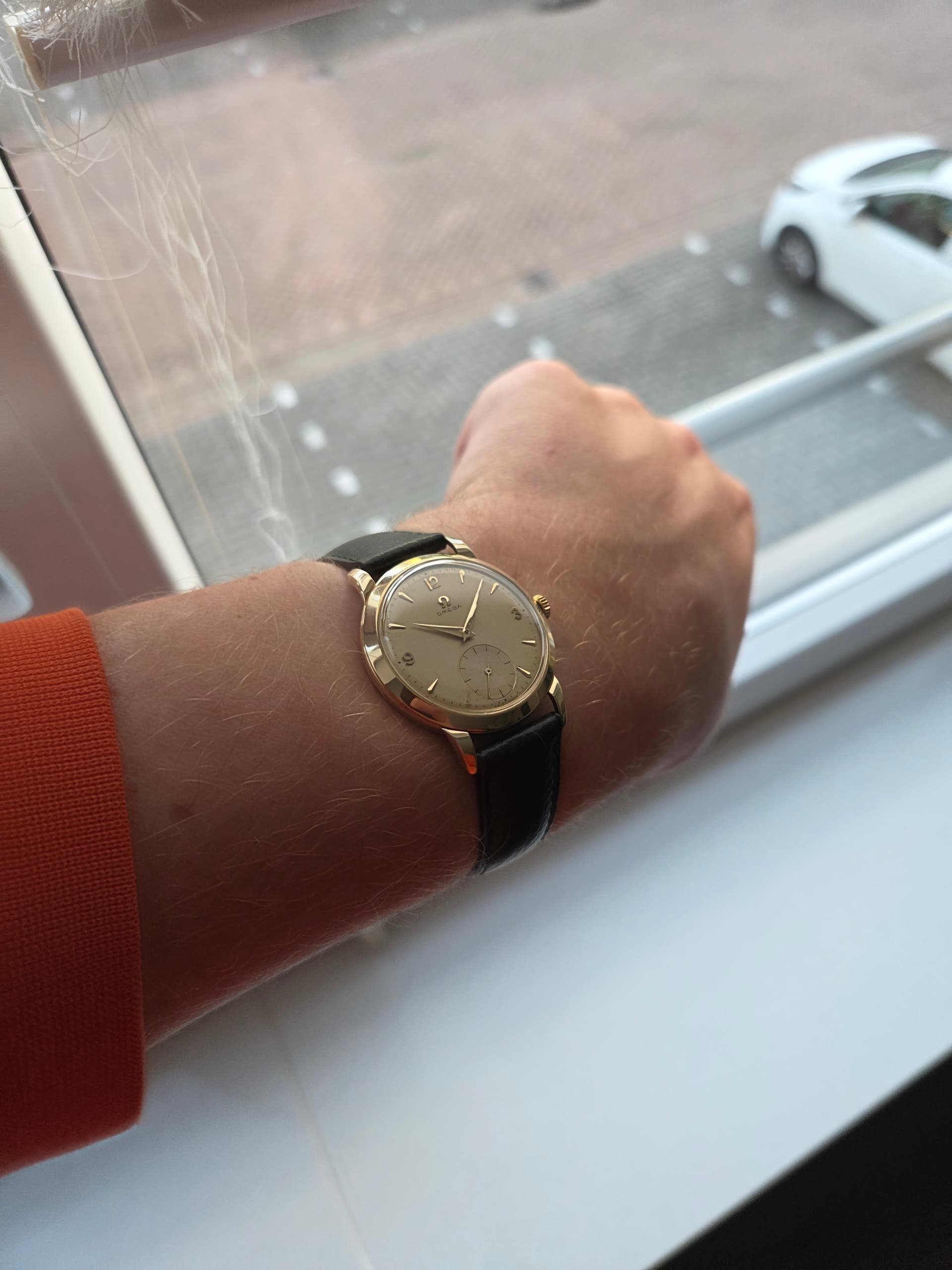 Dit is mijn ultieme dresser. Solide goud, kleine seconde wijzer, geen datum, rustige wijzerplaat, Omega.