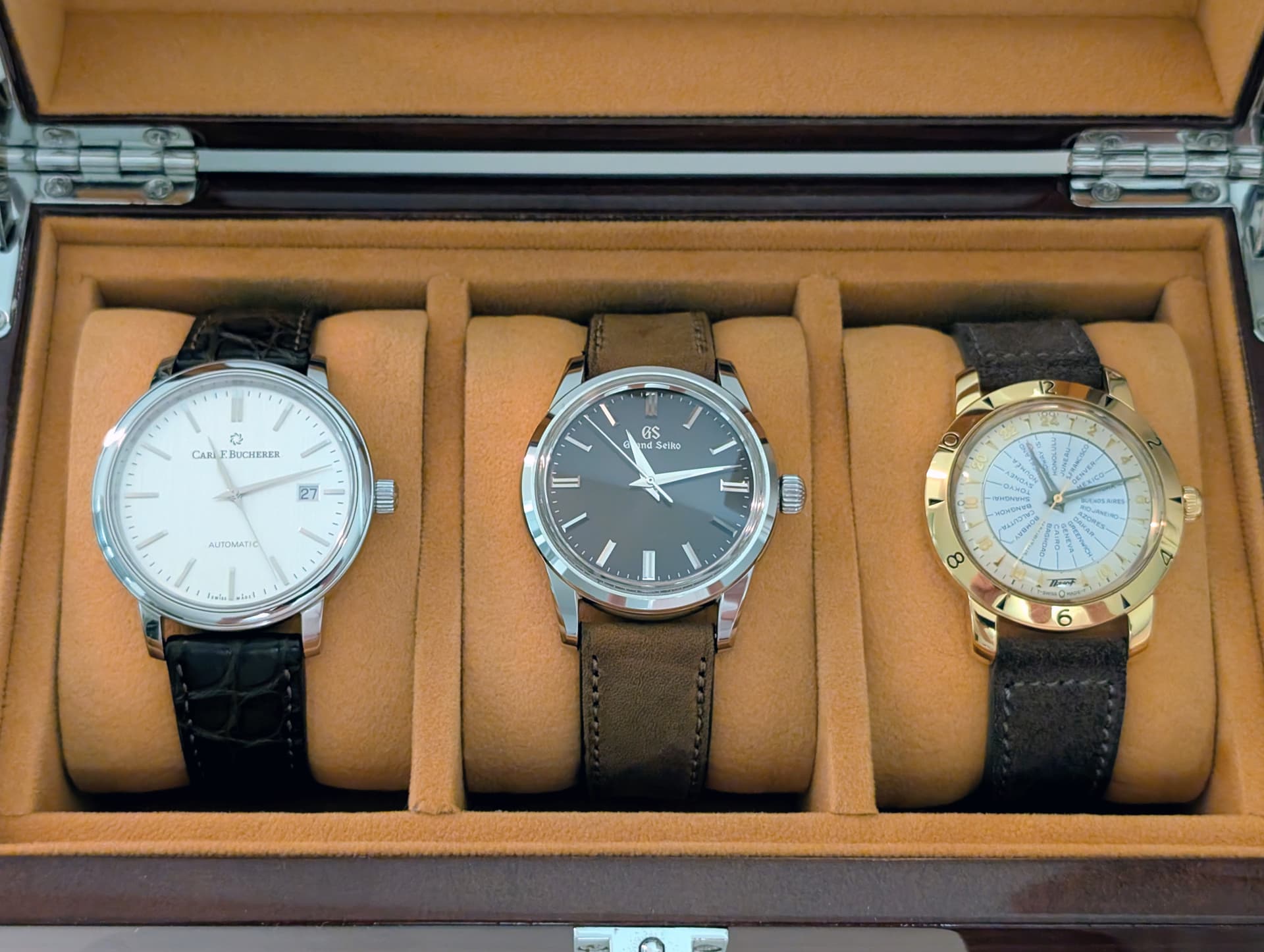 De Junghans Meister Automatic. 38 mm, best wel dun en helaas wel een datum die niet opvalt.