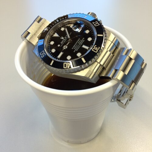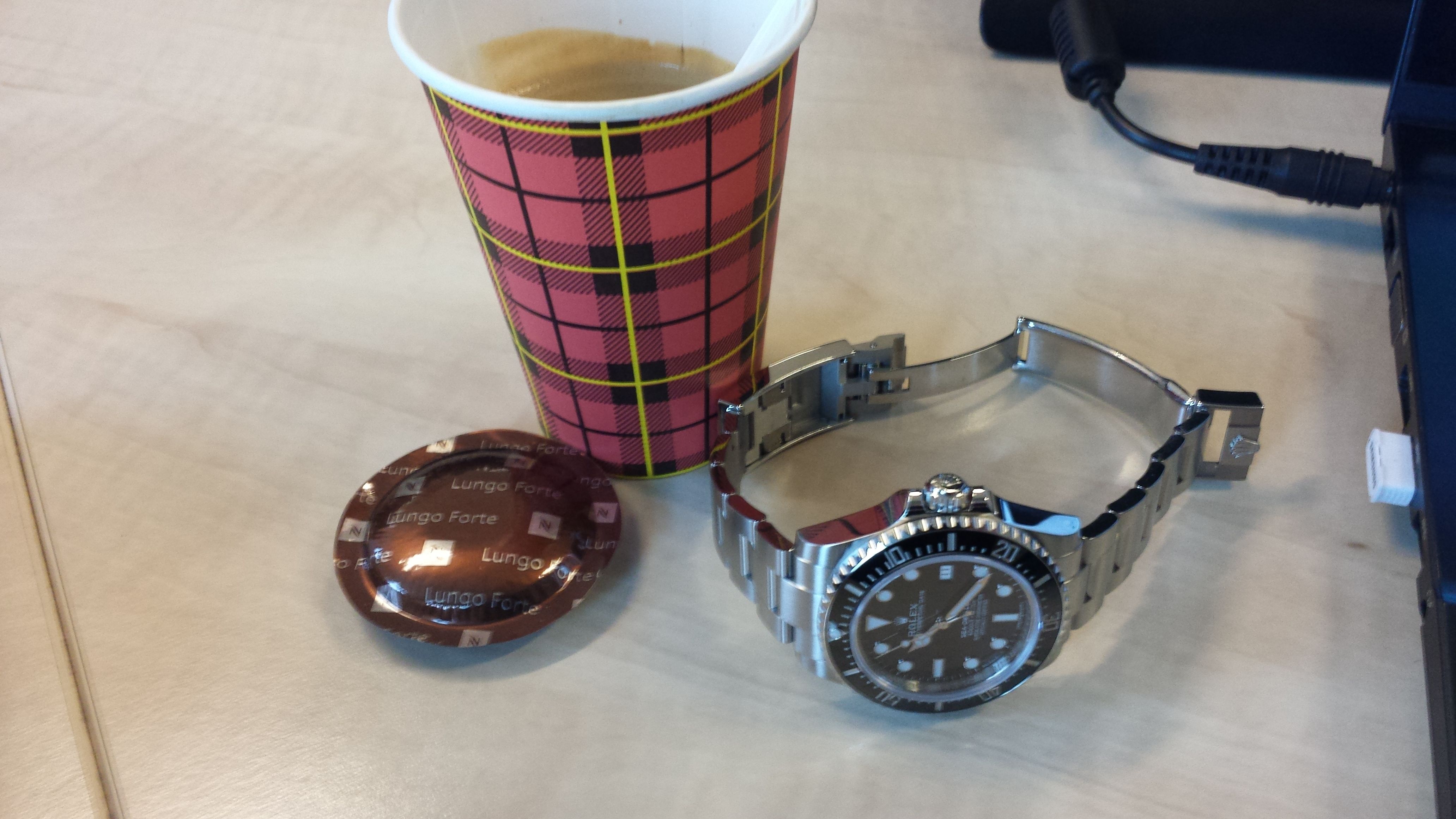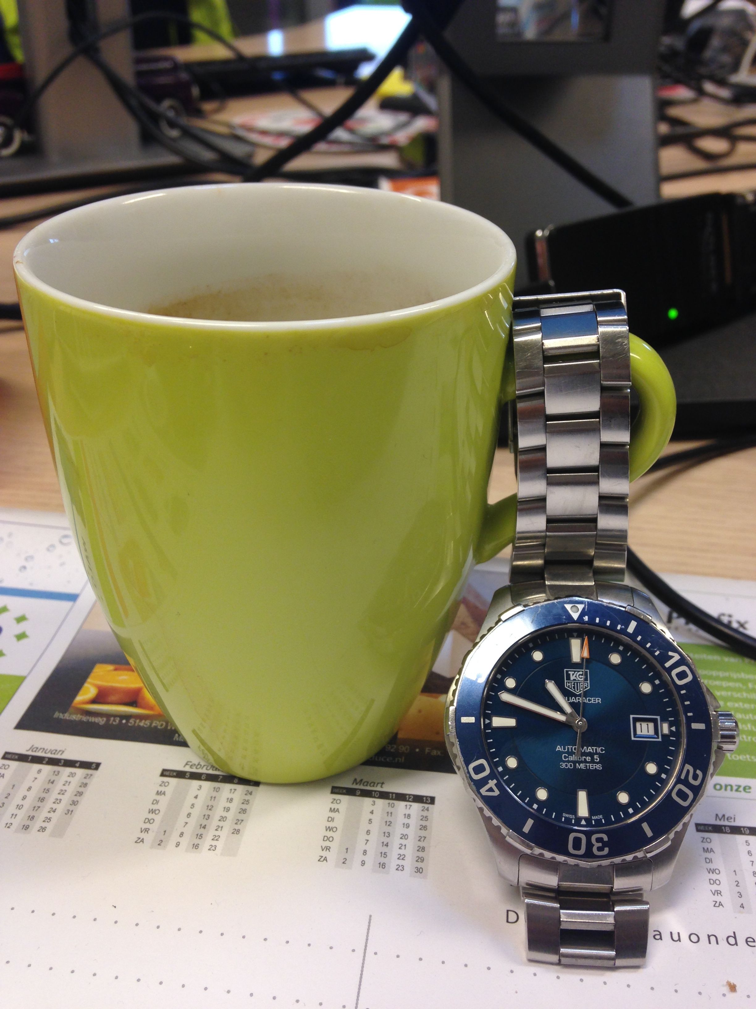 Goeie tip voor als het bekertje te warm is gewoon ff de Rolex eromheen!
