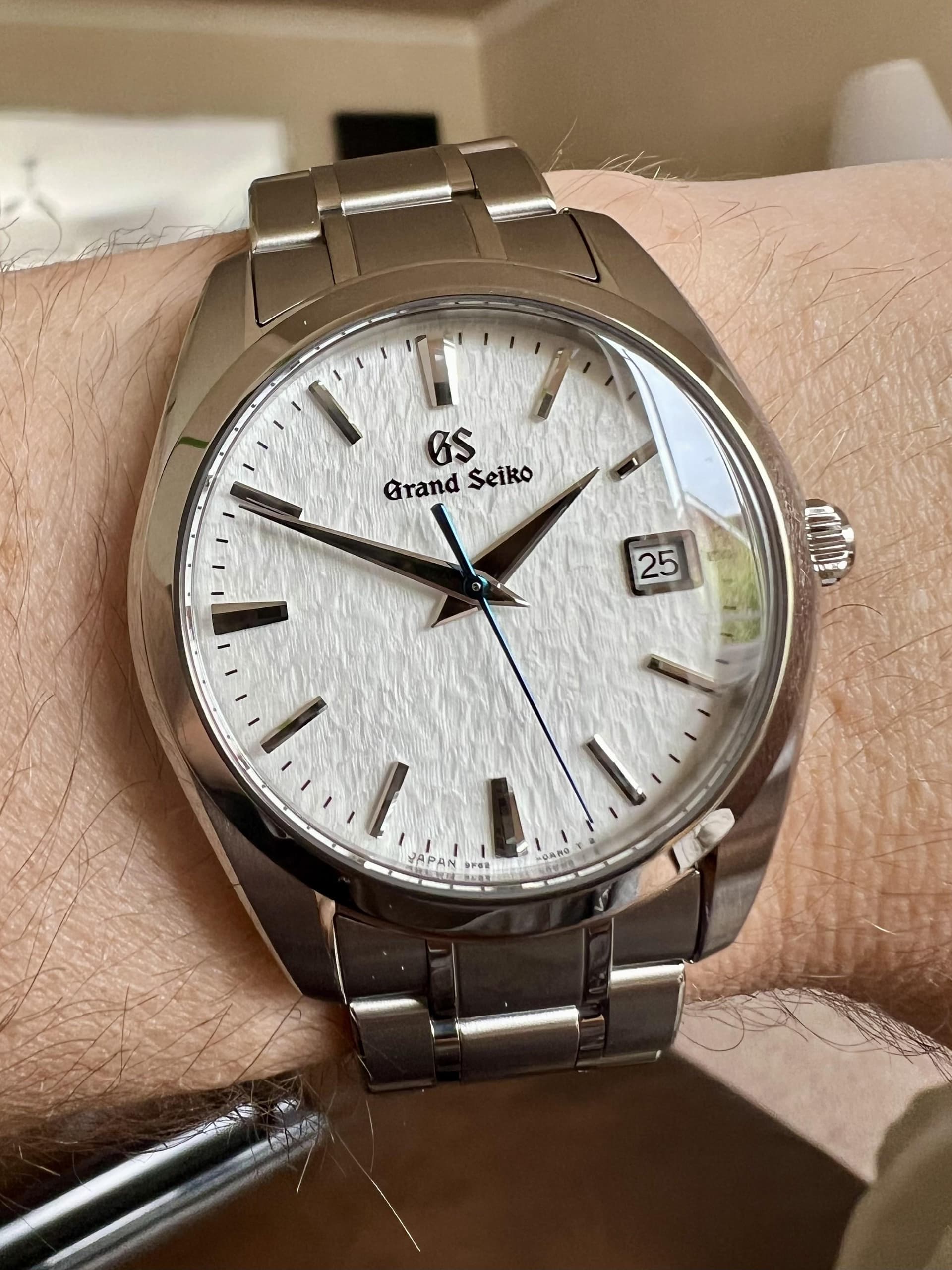 Er is voor mij een titanium SBGX355 met Snowflake dial onderweg die met wat creatief zoeken na import voor jouw budget te regelen is, bijvoorbeeld. De Snowflake gaat nummer drie worden. Ik heb twee stalen in blauw en champagne, daar komt een Snowflake bij, en ik zou er niks op tegen hebben om de zwarte ook nog een keer te scoren. Dat geeft wel aan dat ik ze op mijn 18,5cm pols geweldig vind, die 37mm varianten.
