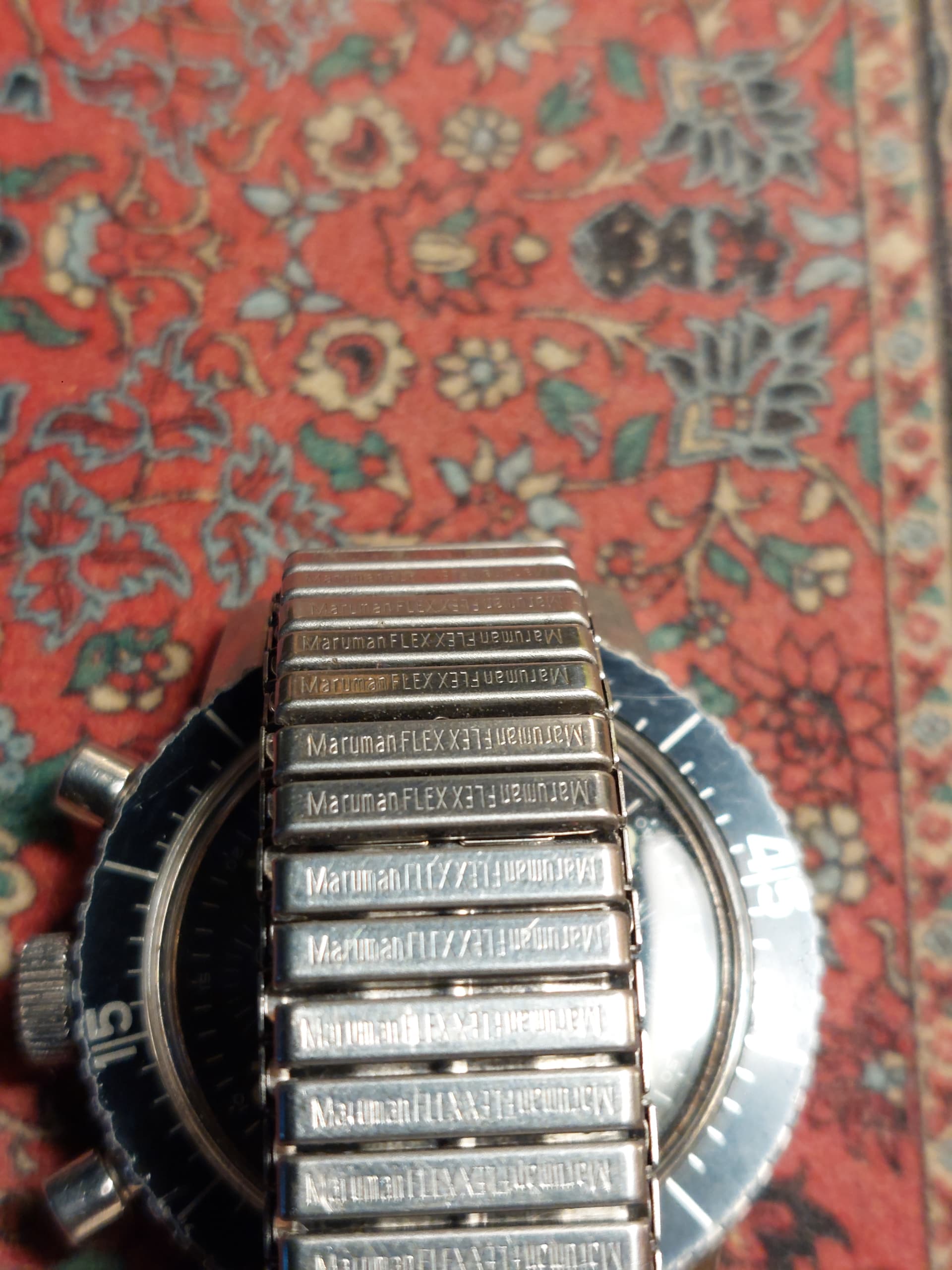 Japans merk band, waarmee deze horloges oorspronkelijk aan de Italiaanse militairen geleverd werden. Ik weet niet of Breitling ze zo leverde of dat die er in de Italiaanse strijdkrachten aan gezet werden.