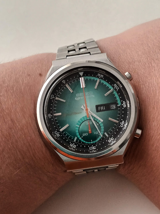 Volgende vintage seiko, weer een 6139 maar dan een groene. Gekregen voor me verjaardag en die vind ik qua kleurstelling echt wel de mooiste