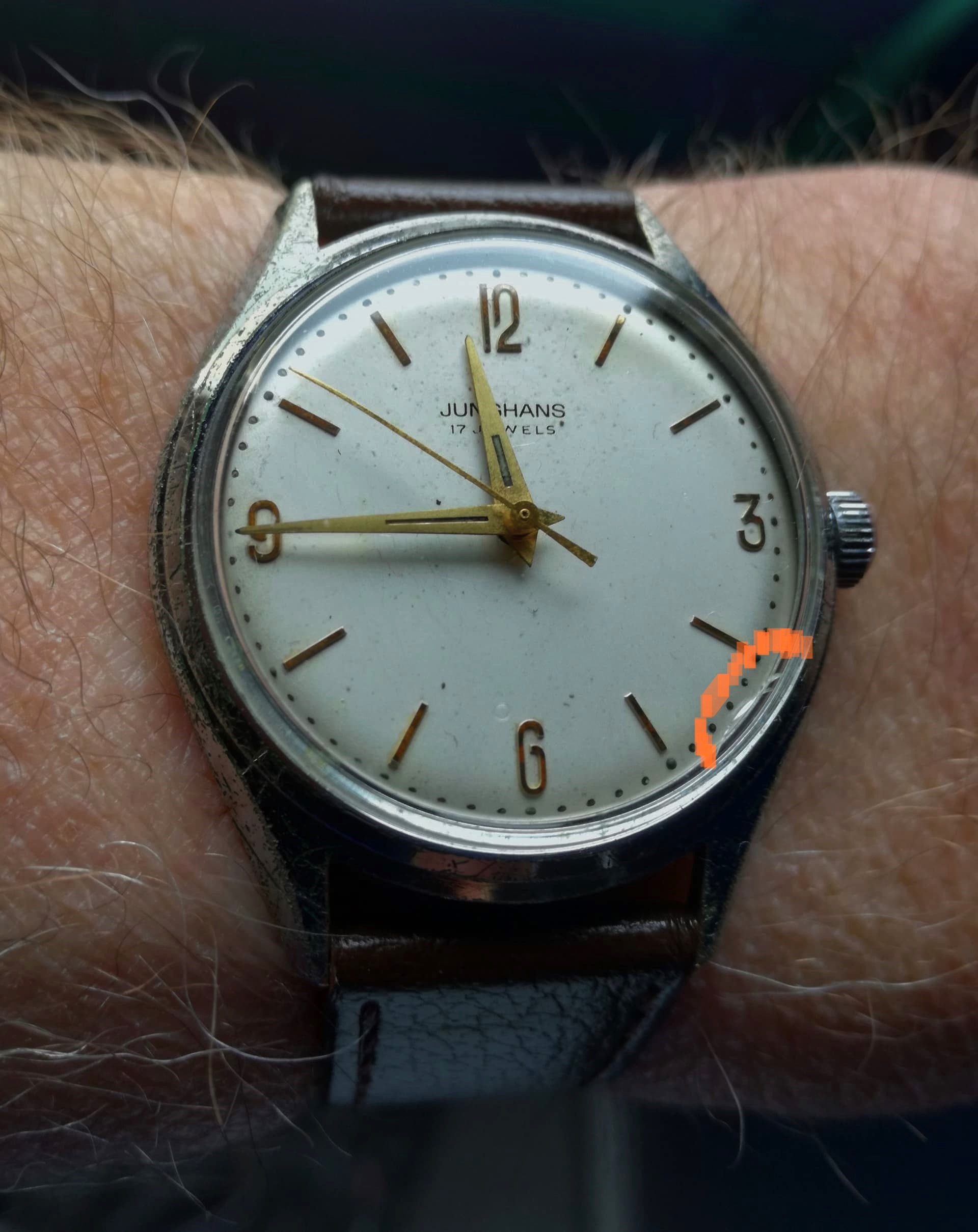 Was eens bezig mijn horloge af te doen, komt er een wesp aanvliegen. Met een armbeweging dat beest proberen weg te slaan en het horloge vliegt 5 meter verder op de keramische terrastegels⌠beste schade aan de bezel.