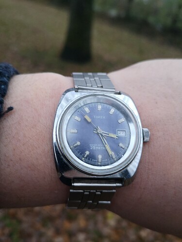 Leuk ding. Ik heb ooit exact dezelfde gehad met ook die kleur wijzerplaat. Ook daar ontbrak de bezel. Bekend probleem. Ik weet dat @Cricket33 veel Timex en andere horloges uit deze periode heeft. Misschien heeft hij een tip voor de bezel?