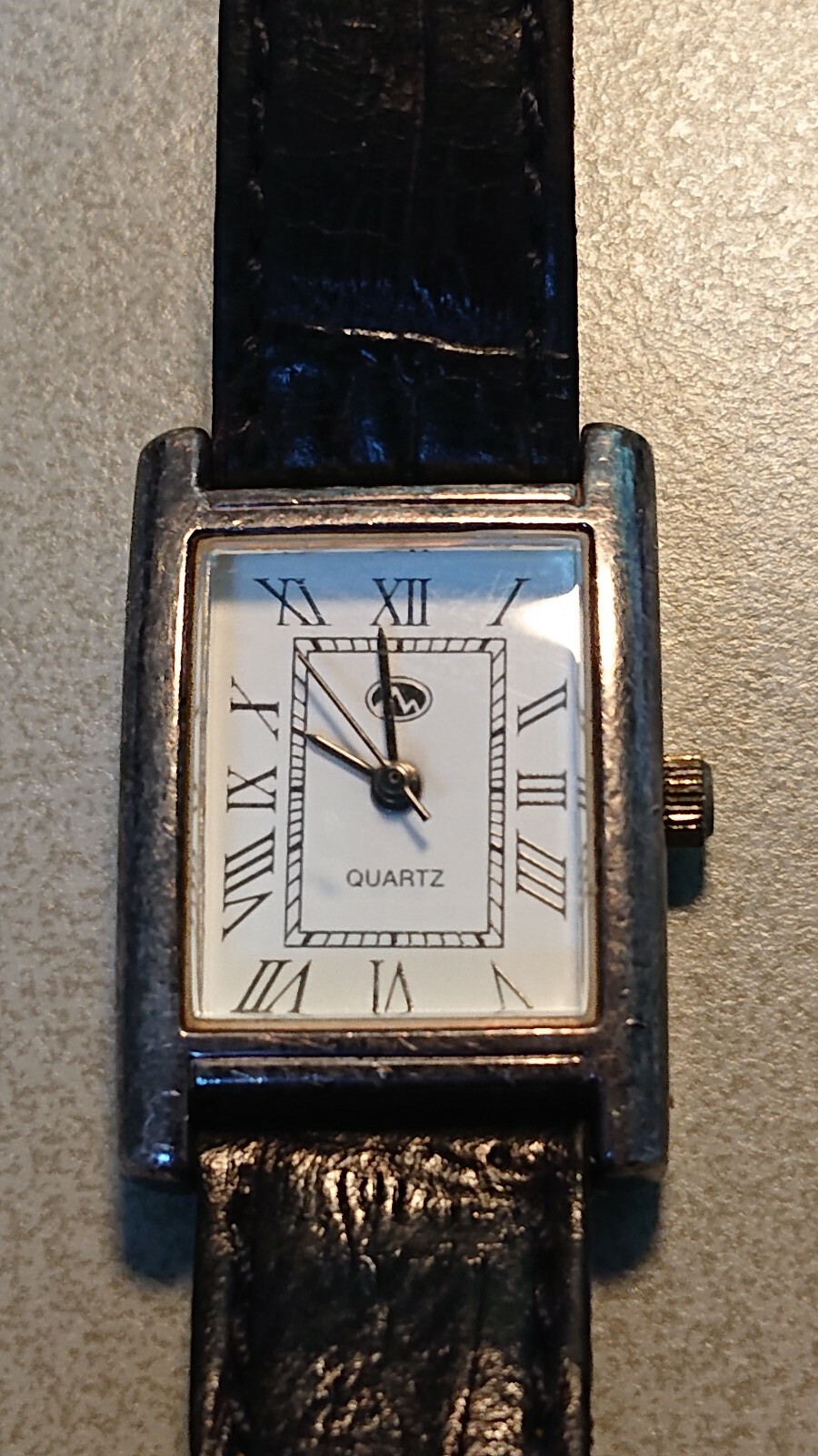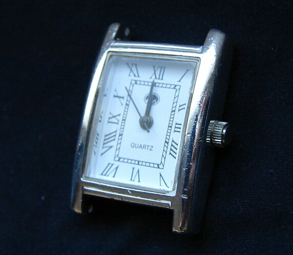Laatst deze opgepikt in de kringloop. Een dameshorloge wat veel zwaarder aanvoelde dan rest. Intuitief voor deze gekozen. Een zwarte kast met een mooi wijzerplaatje. Het merk kon ik niet lezen omdat er een sticker op de achterzijde zat.