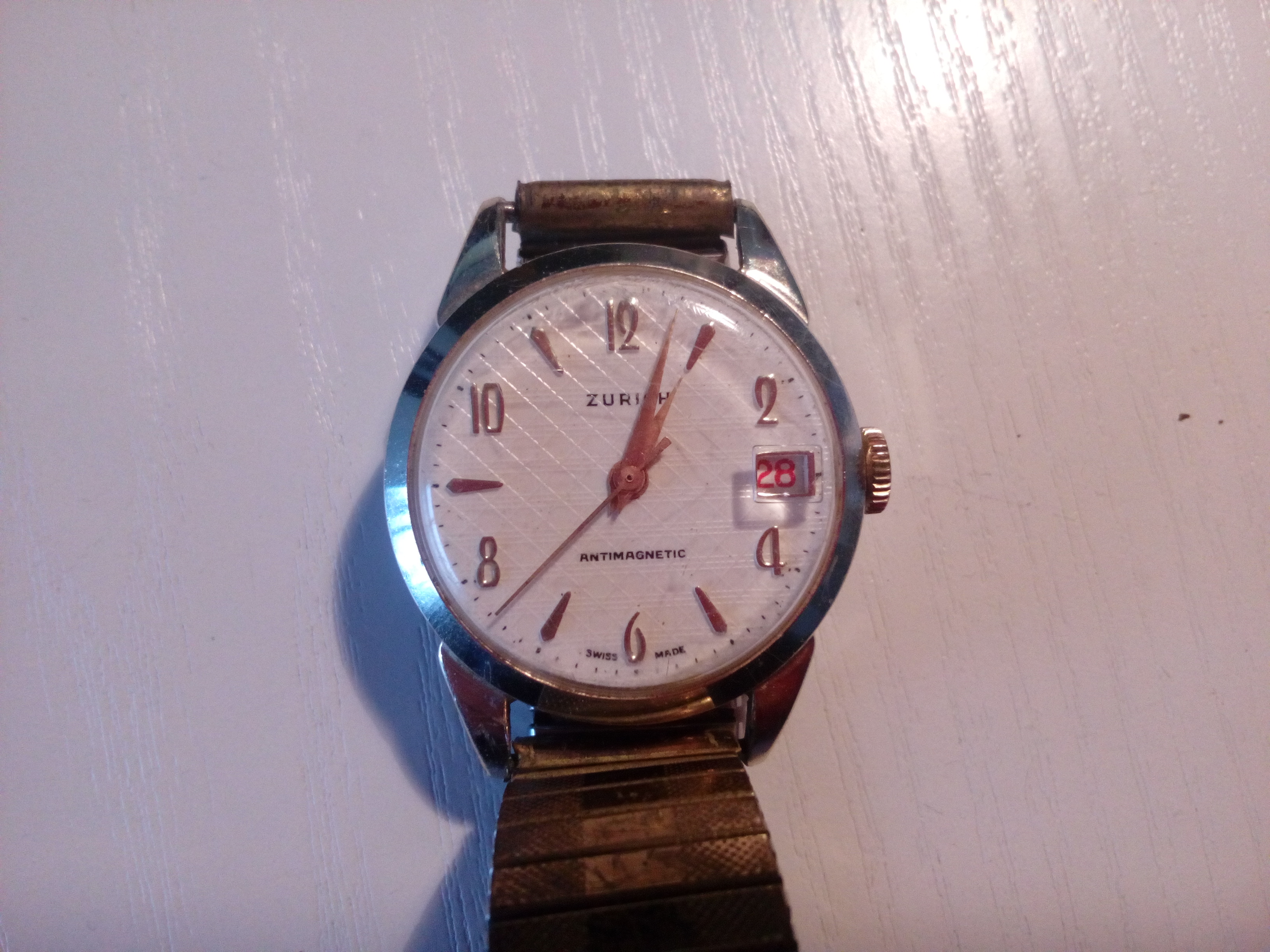 Vandaag in een kringloop gekocht voor €5,-. Werd gezegd dat hij te hard was opgewonden, maar thuis heb ik de balans even op gang geholpen en nu loopt hij weer. Er zit een vrij simpel uurwerkje in. Helaas heeft hij vaste lugs, dus daar moet je met een ander bandje rekening mee houden. Ik weet nog niet wat ik ermee ga doen verder, maar voor de prijs kon ik hem niet laten liggen.