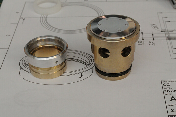 Dit zijn de eerste onderdelen. De uurwerk module (ring) waarin het uurwerk en het glas wordt gemonteerd, het deksel en nu nog een kastmodule die ik heb gemaakt als productieproefje. De eerstvolgende onderdelen worden een prototype kastmodule en een opsluitring om het uurwerk in de module te klemmen.