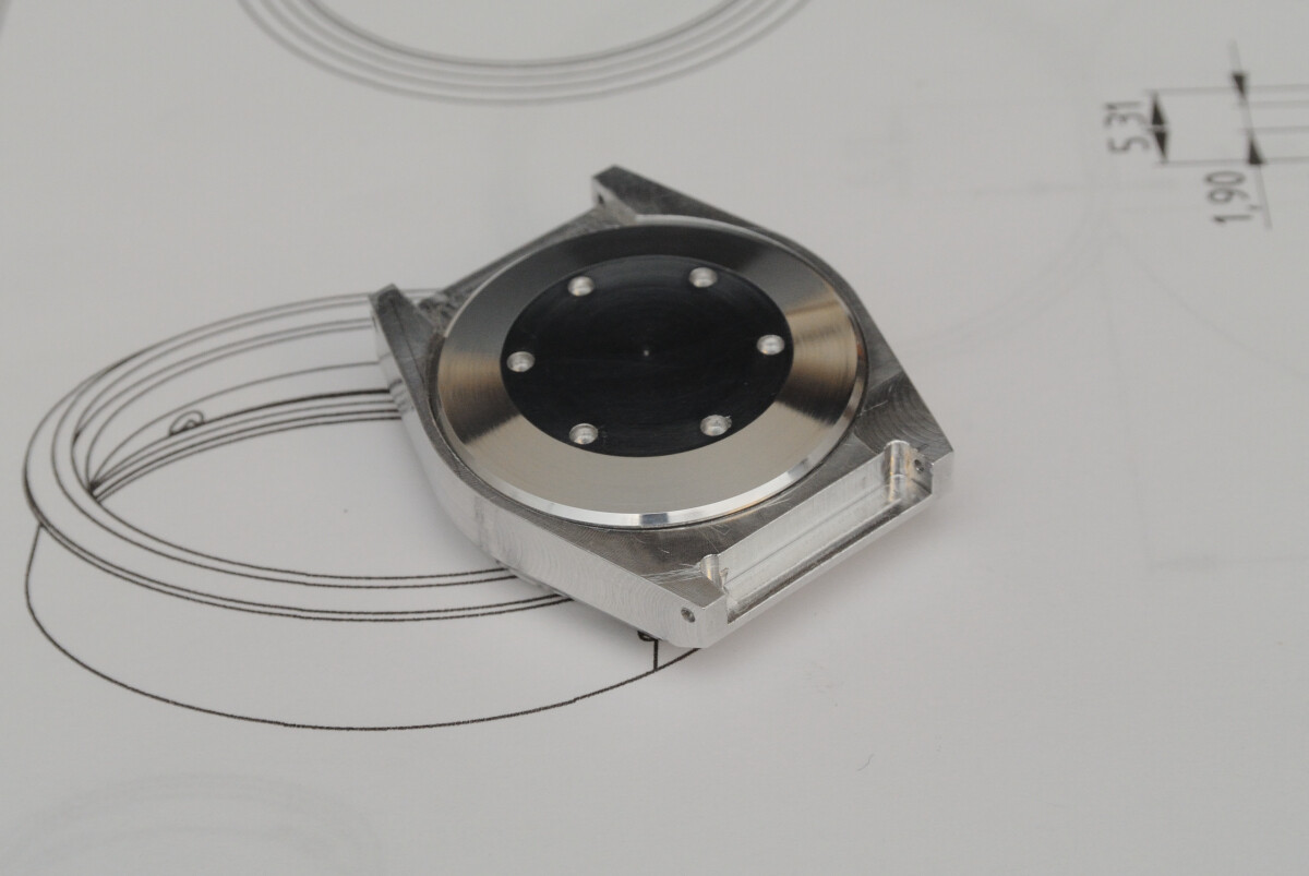 De eerste onderdelen van het prototype zijn gereed. De proto wordt uitgevoerd in aluminium en die gebruik ik om te kijken hoe het horloge eruit gaat zien en hoe het draagt.