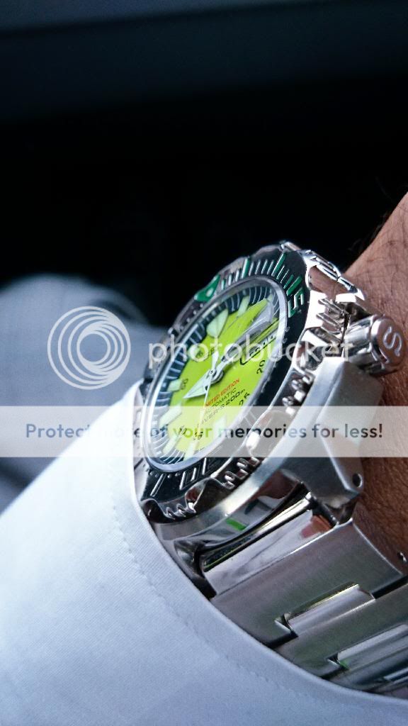 Mooi hoor Sprinter. Op Facebook maak je me ook altijd lekker met al die mooie plaatjes. Mijn voorkeur gaat vooralsnog uit naar een originele zwarte. Hoewel ik de Dracula ook erg mooi vind. Hoe dan ook, het horloge potje is leeg dus zal er eerst iets uit moeten voordat er weer wat in komt. En daarover kanen wil ik nu nog niet beslissen. Dus eerst maar eens lekker genieten van wat ik heb. Ik heb dit monster al een paar maanden in mijn bezit, maar had hem nog niet geïntroduceerd. Bedankt voor jullie hartverwarmende reacties