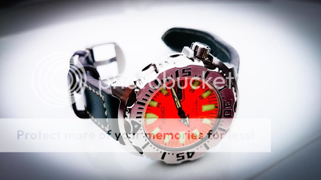 Ik heb mij inmiddels al enige tijd op de achtergrond gehouden. Bewust, onbewust, geen idee. Maar na aanschaf van mijn laatste aanwinst is de rust weder gekeerd. Ik was al enige tijd op zoek naar een horloge met een oranje wijzerplaat en liep eigenlijk altijd voorbij aan de Orange Monster. Waarom weet ik niet, maar het was een gevoel. uiteindelijk dacht ik, laat ik het toch maar eens proberen. Als hij niet bevalt, flipper ik hem weer door. Er werd wat gezocht en via via heb ik een NOS exemplaar gevonden. Het kan zijn omdat ik er blanco instapte, maar wat een klok zeg!!! Heb er geen moment spijt van gehad. Deze klok is het einde, mede doordat de behoefte om wat nieuws te kopen eigenlijk zo goed als verdwenen is. Alleen een Black Monster staat nog op de verlanglijst. Maar die kan natuurlijk ook wachten.