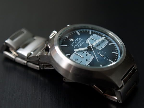 Zo een twintig jaar geleden kocht ik een Pulsar Chrono omdat het liefde op het eerste gezicht was. Ik heb deze ook altijd gehouden en draag hem regelmatig. De tand des tijds heeft er wel voor gezorgd dat de kroon een beetje krom is maar voor de rest gaat het nog redelijk met hem.