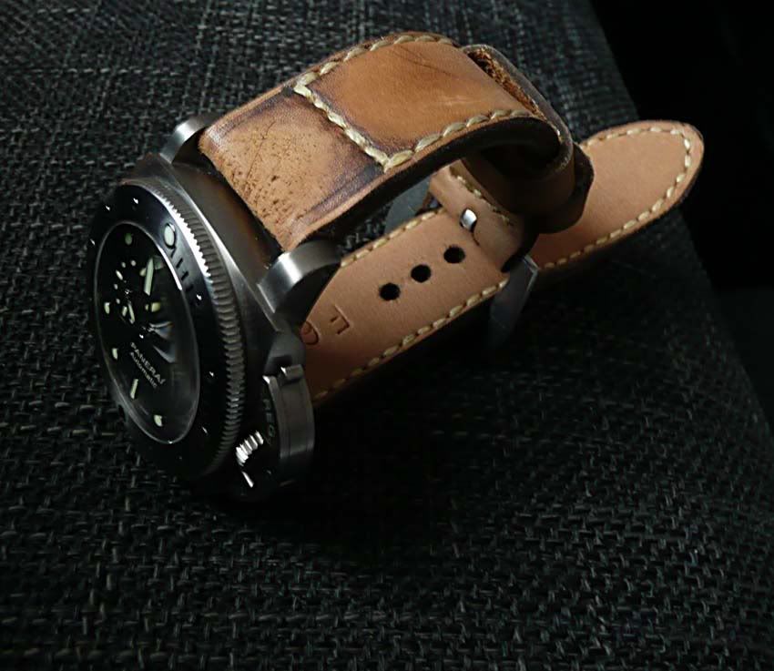Via forumlid Rick kwam ik bij Joe van Diaboliq straps terecht en ook hij maakt retecoole banden voor Panerai (en andere merken) alleen gebruikt hij heel mooi vintage leer van munitie tassen en ander militair materiaal.