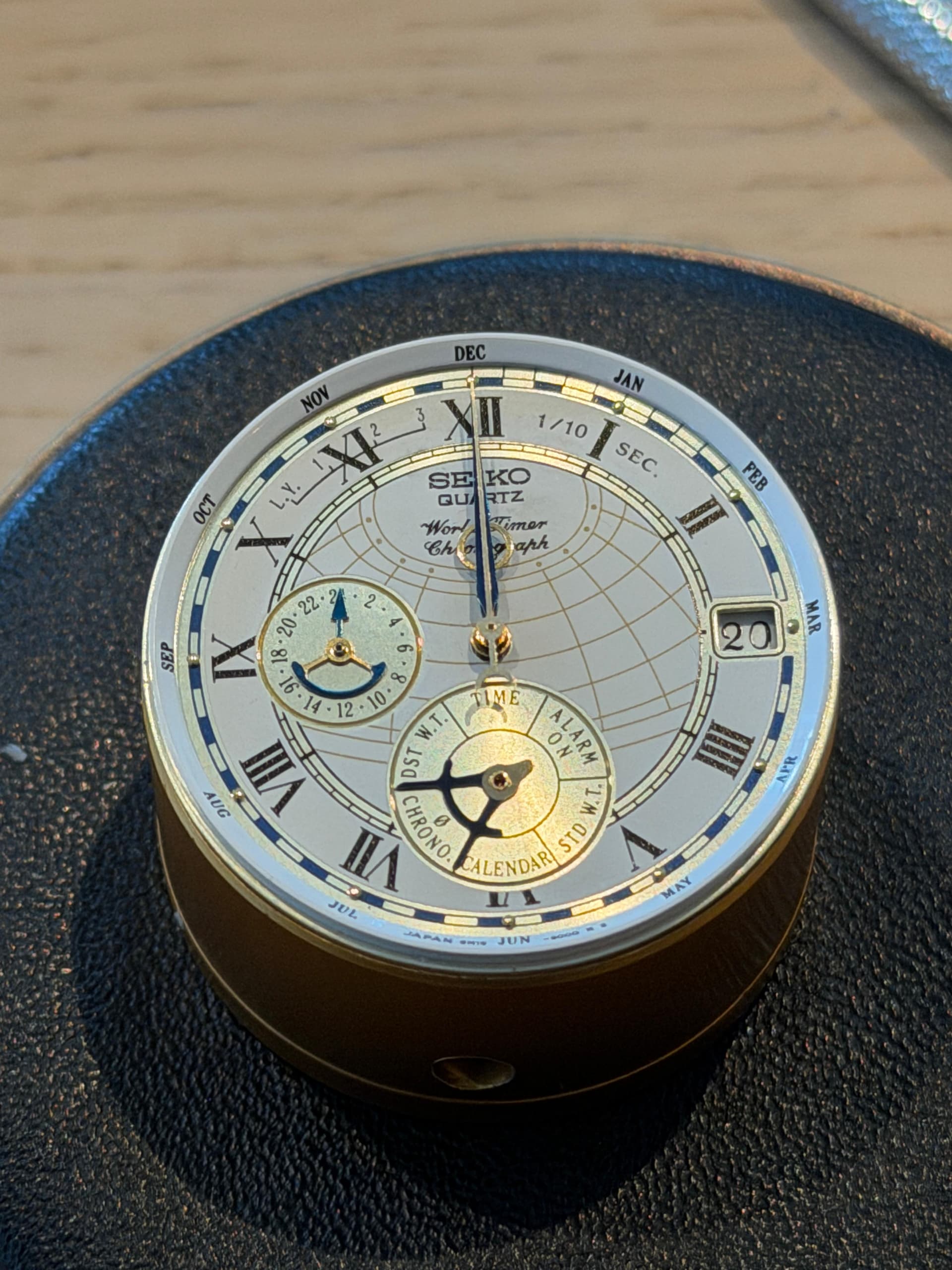 Hoewel ik trouwens ook niet vies ben van alcohol zou ik in dit geval iets anders gebruiken. Mijn eerste gedachten gaan naar een wattenstaafje met idd. gedestilleerd water of zoiets, als het oppervlakkige vervuiling is. Met alcohol loop je volgens mij het risico dat ook de print op de wijzerplaat gaat ‘oplossen’. Maar goed, ik heb er verder geen verstand van dus mijn antwoord is niet per se “zinnig”.