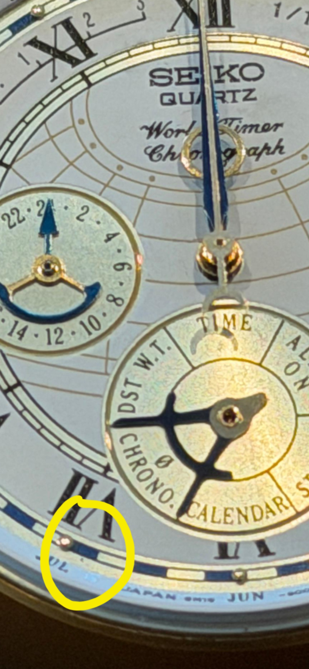 Het is een vrij moderne plaat die wat meer kan hebben. Ik heb het zelf met een eigen horloge ook gehad (ook een Seiko) en toen met een zachte rubber tip redelijk goed weggekregen. Rodico zou ook wel kunnen helpen