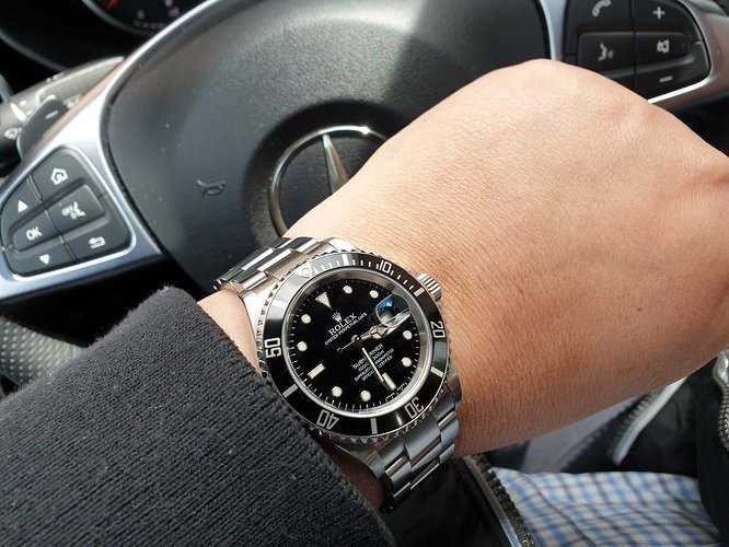 Kijk naar het geheel, naar de bezel, de opdruk en de pip, en de wijzers. Vergelijk dan even met die van mij, die wél echt is…
