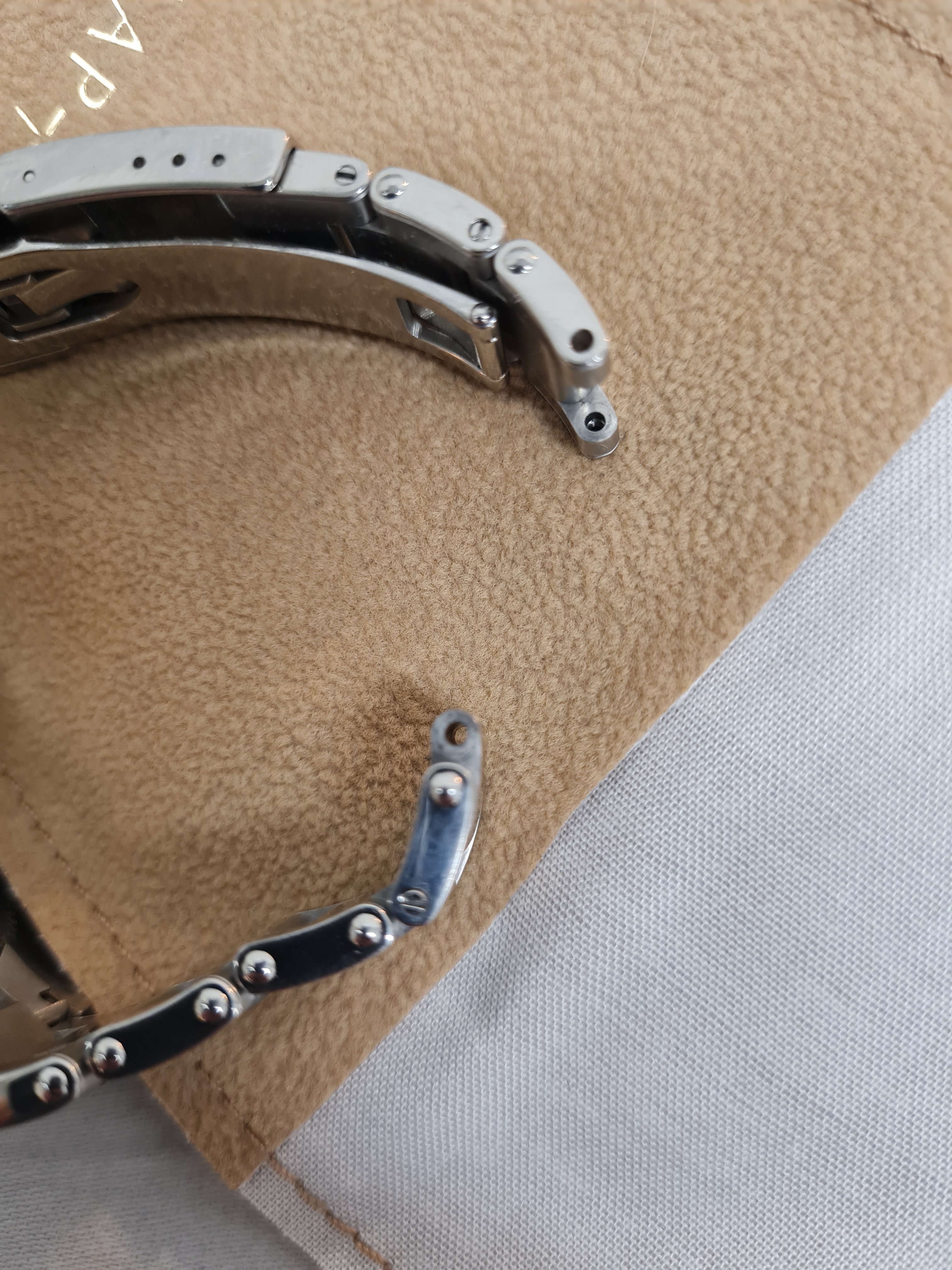 Zorg ervoor dat de schroeven altijd geborgd worden met Loctite na op maat maken. Veel juweliers doen dat niet en dan is dit het gevolg.
