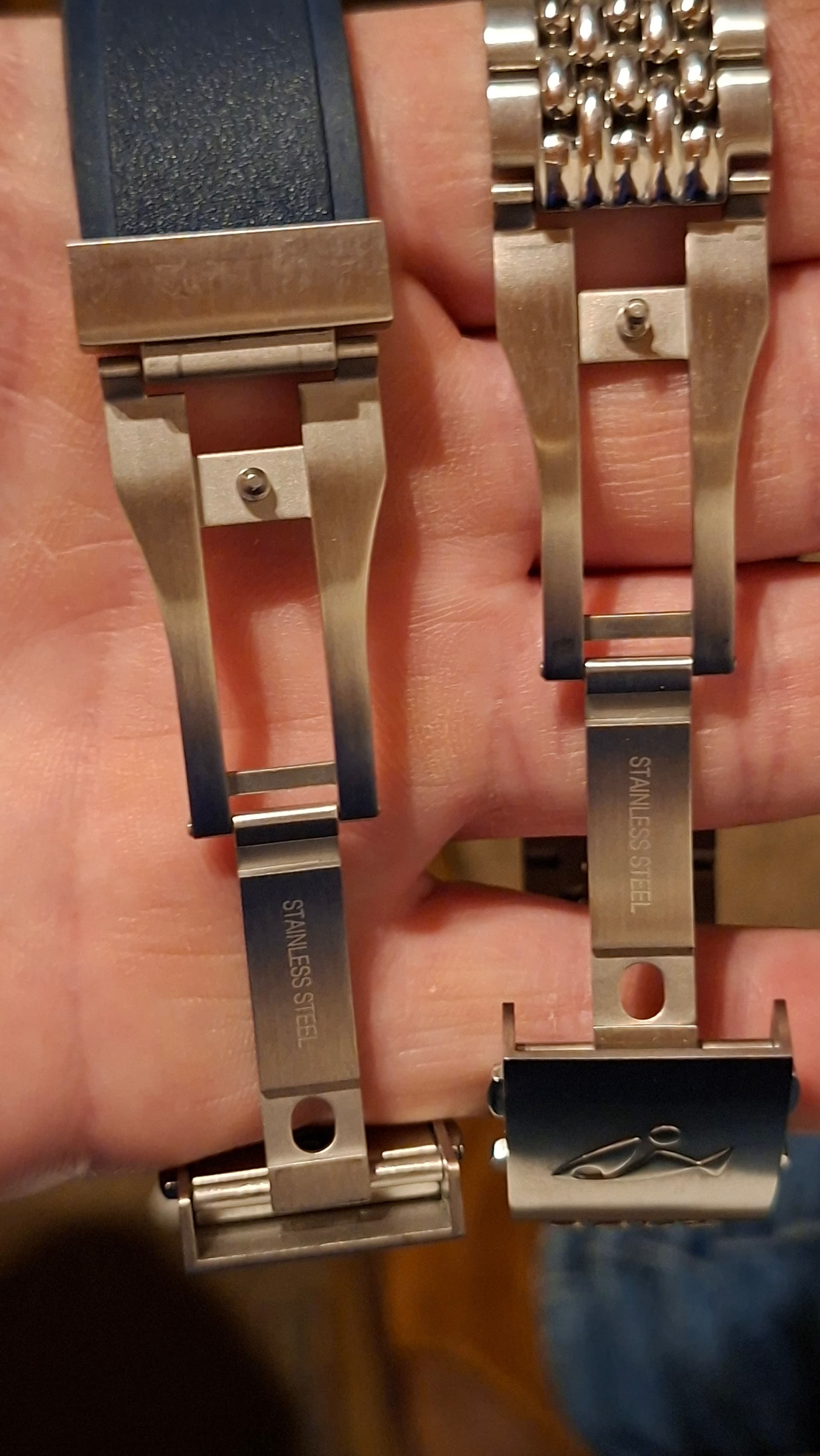 Grappig is trouwens dat mijn BoR volgens mij wel aan de sluiting met koppelstukje kan, maar andersom dus niet. Misschien heeft (een van) jouw voorganger(s) de sluiting al gewisseld of heeft Doxa inderdaad (eindelijk!) het licht gezien. Want één sluiting voor beide zou wel fijn zijn! Scheelt gewoon een hoop geld als je de ‘dure’ rubbertjes wil monteren.