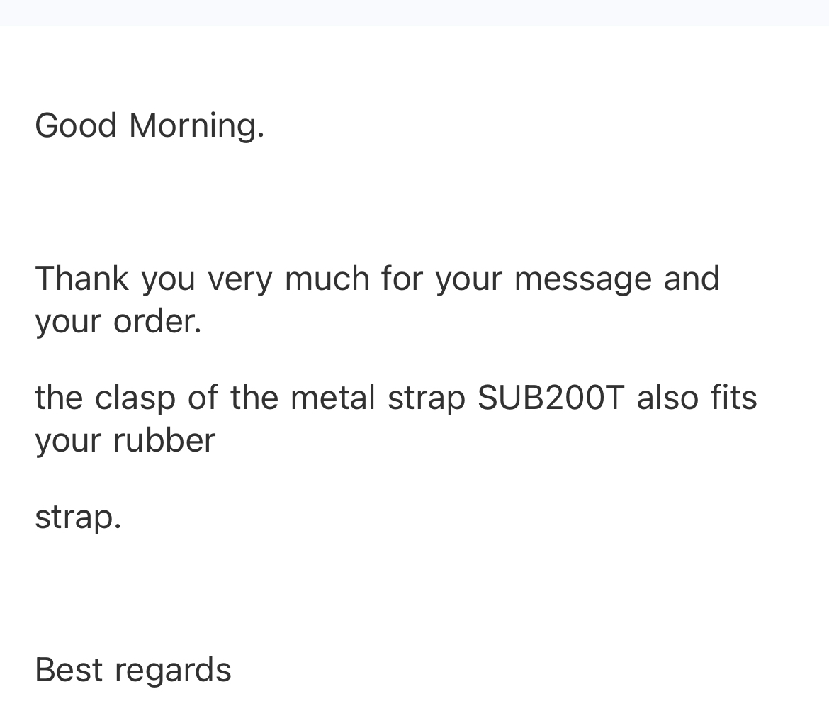 Ik heb zelf de sub 200t gehad en de clasp van de stalen band past gewoon op de rubber band in deze serie.