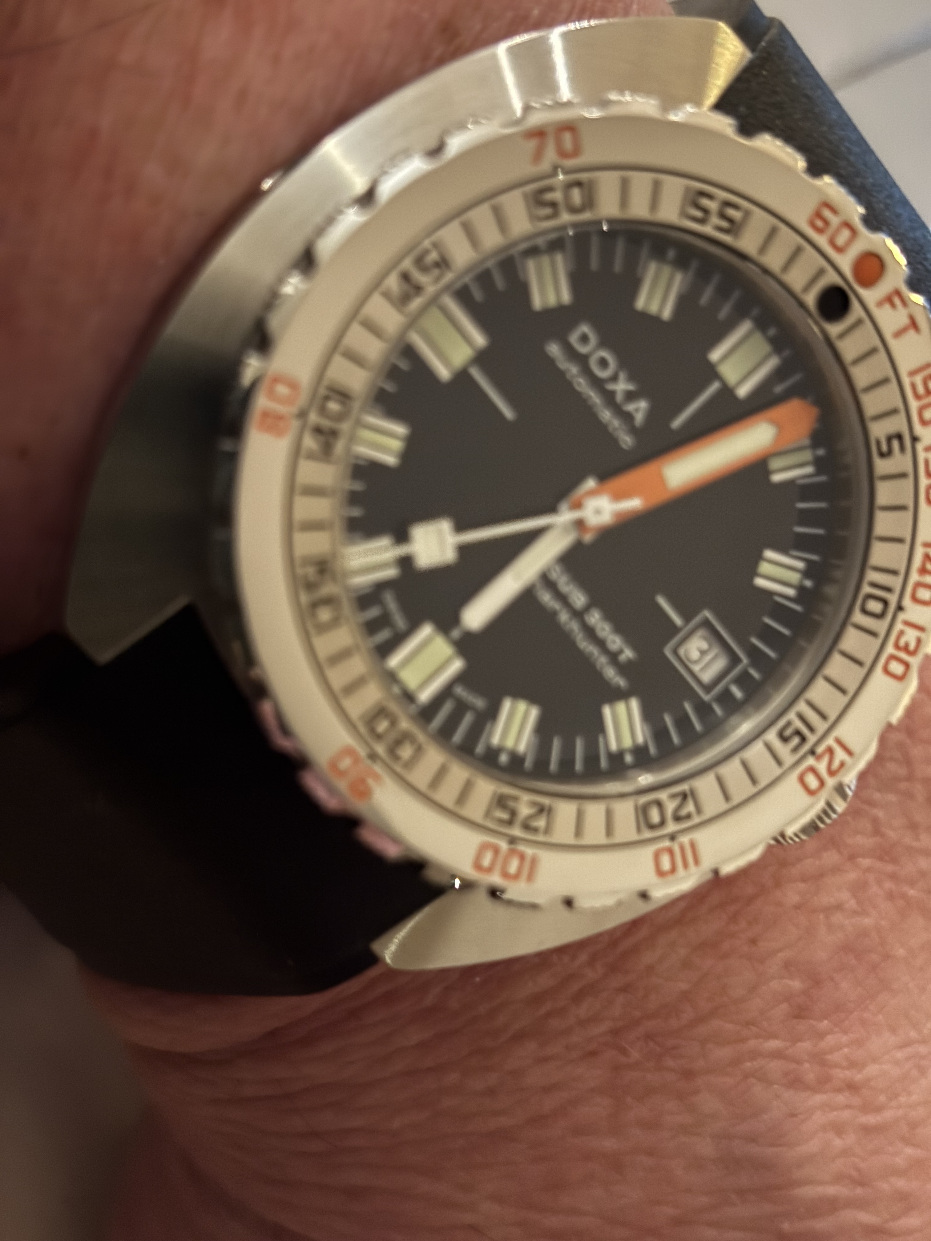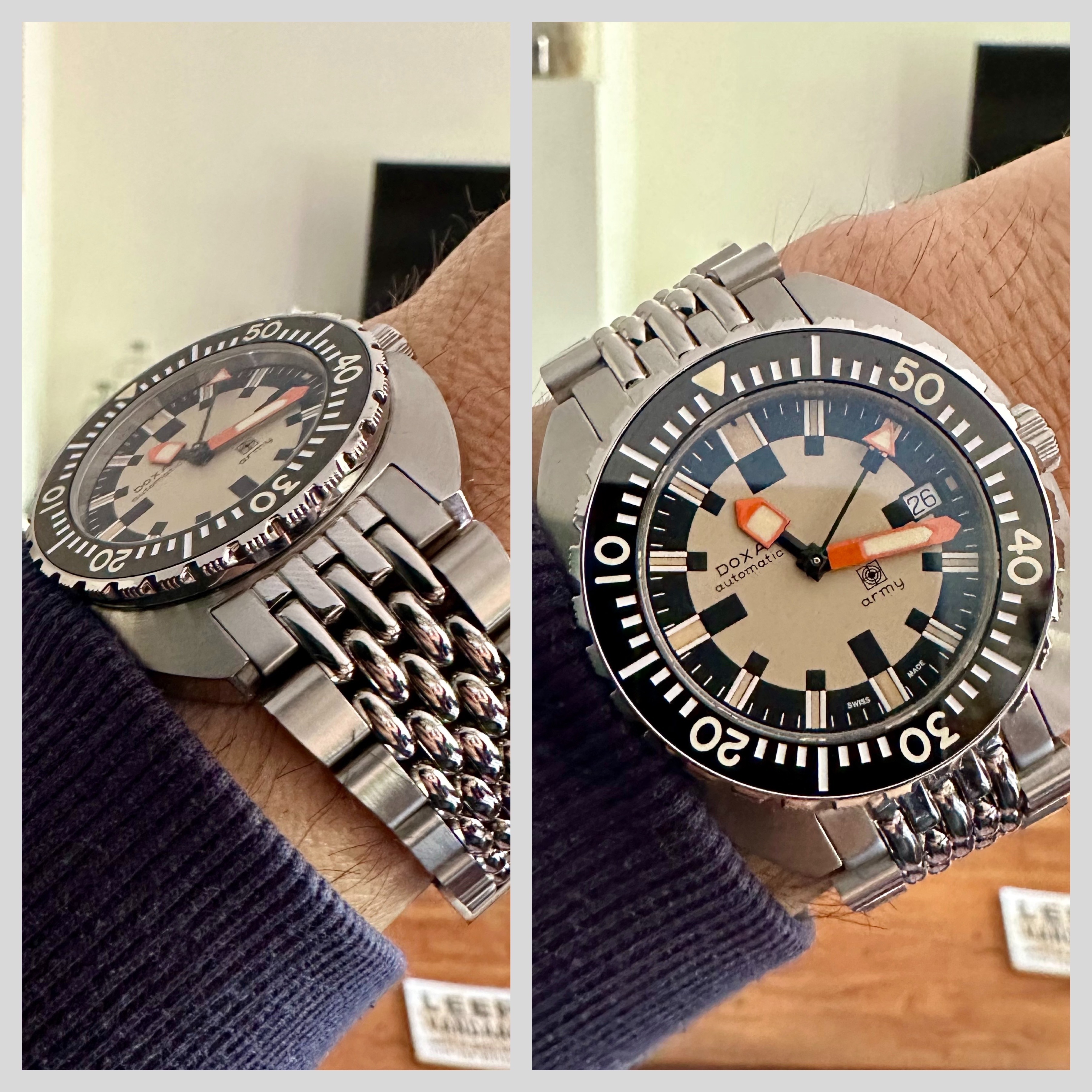 Die vind ik lastig. Inderdaad veel geschiedenis, zowel vanwege ‘Doxa by Synchron’ van weleer en Rick Marei die ooit de Subs terugbracht bij Doxa en nu eigenaar is van Synchron. Persoonlijk vind ik dit wel meer dan een hommage, en misschien iets als ‘sibling rivalry’. Ik vind deze zeker meer legit dan een Maranez bijvoorbeeld, maar dat is vast ook persoonlijk.