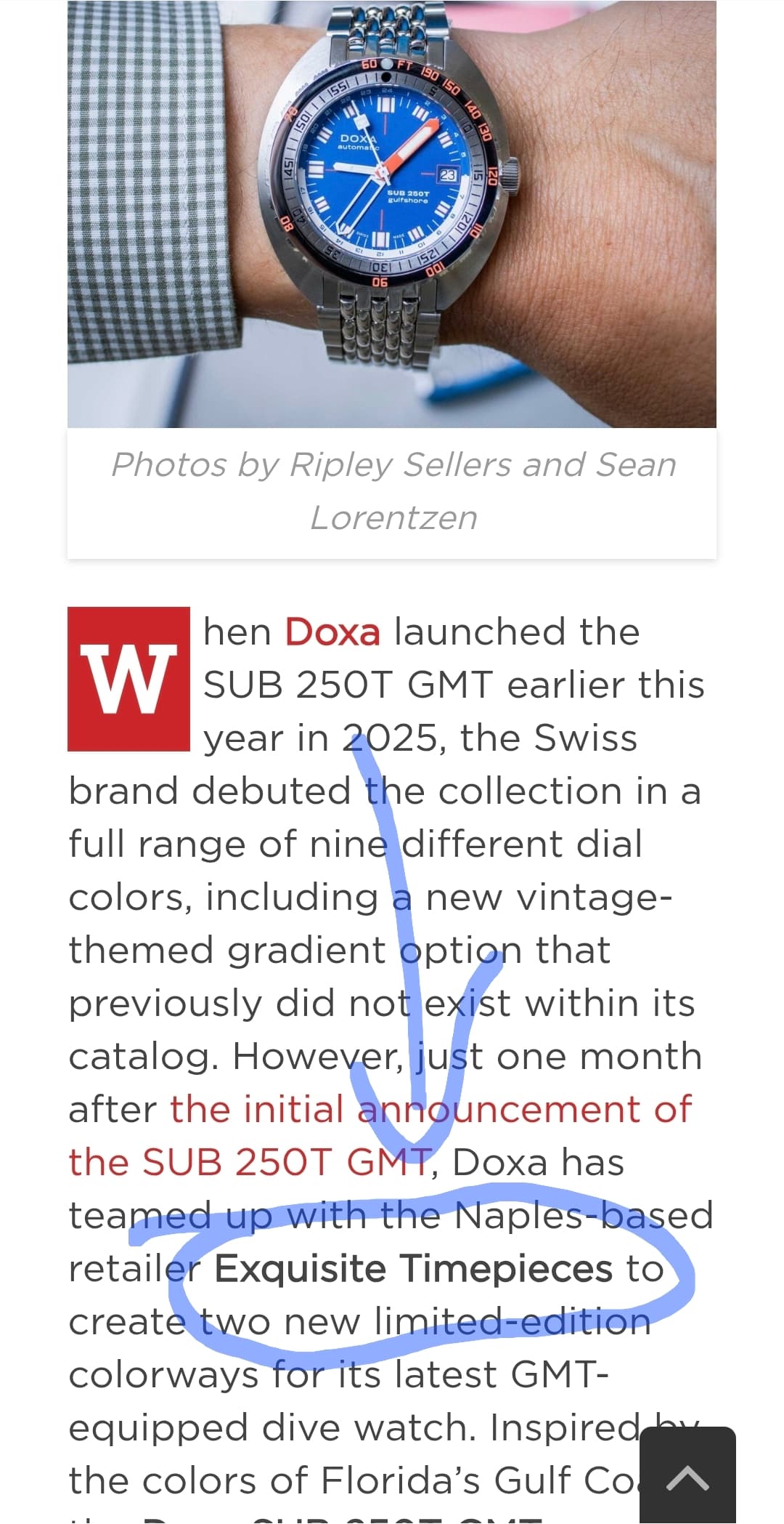 Ja, artikel van Hodinkee hierover dat ik vond was uit april 2025. Bij Exquisite gewoon nog te krijgen trouwens: DOXA 855.10.061.10-SE11 SUB 250T Afterglow Ltd Edition - Exquisite Timepieces en DOXA 855.10.231.10-SE11 SUB 250T Gulfshore Ltd Edition - Exquisite Timepieces