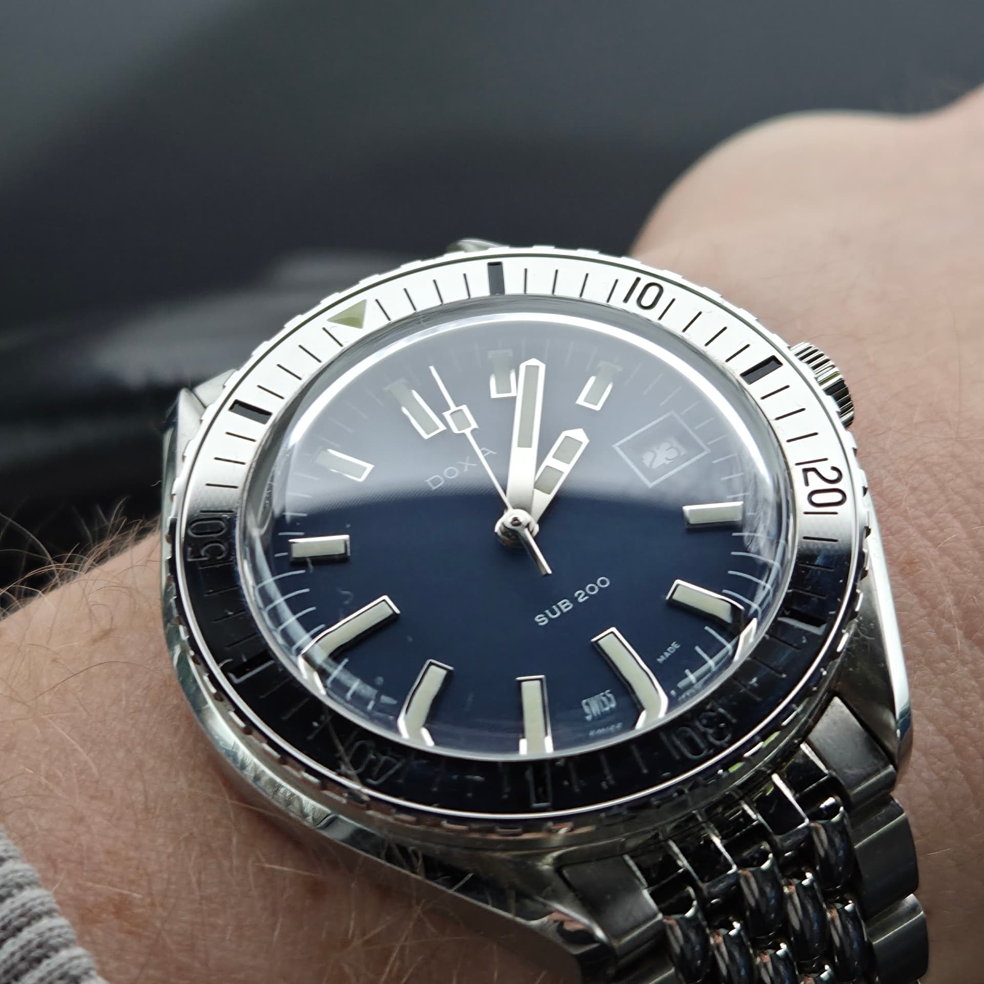 Doxa Sub300 Professional (oranje) of ß (carbon), Breitling Colt GMT 40 met zilveren plaat.