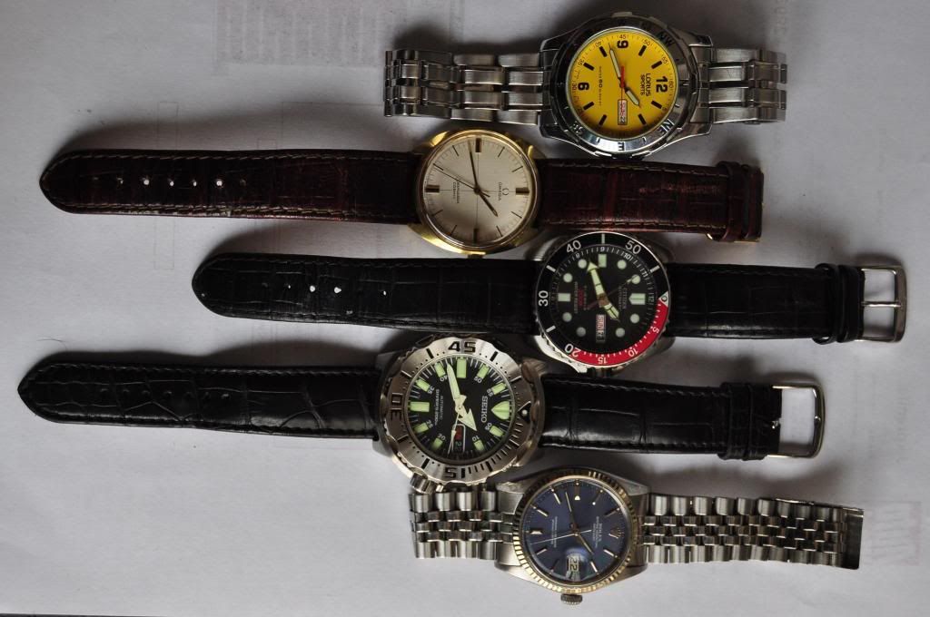Ik heb geen uitgesproken top favoriet. Hierbij een plaatje van horloges die ik meestal draag. De Citizen duiker meestal ook 's nachts vanwege het goede aflezen in het donker. De dikke en korte uurwijzer van het Monster is moeilijker af te lezen in het donker, vandaar dat mijn verwacht gemod Oranje Monster andere wijzers krijgt. Sinds gisteren draag ik mijn nieuwe gele Lorus kwarts. Die brengt het zonnetje in huis…