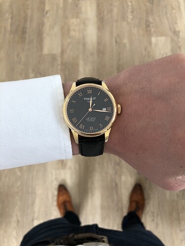Dit is een Tissot Le Locle en dan de nieuwe versie met het Powermatic 80 uurwerk met 80 uur gang reserve. Deze kost volgens mij 500-650 euro, afhankelijk van staal of goudkleurig en metalen band of leer. Tweedehands is het vorige model zonder Powermatic 80 voor ongeveer 250-350 euro wel te vinden. Ik heb ooit de zwart/rose goud kleurige gehad. Erg leuk en fraai horloge voor het geld.