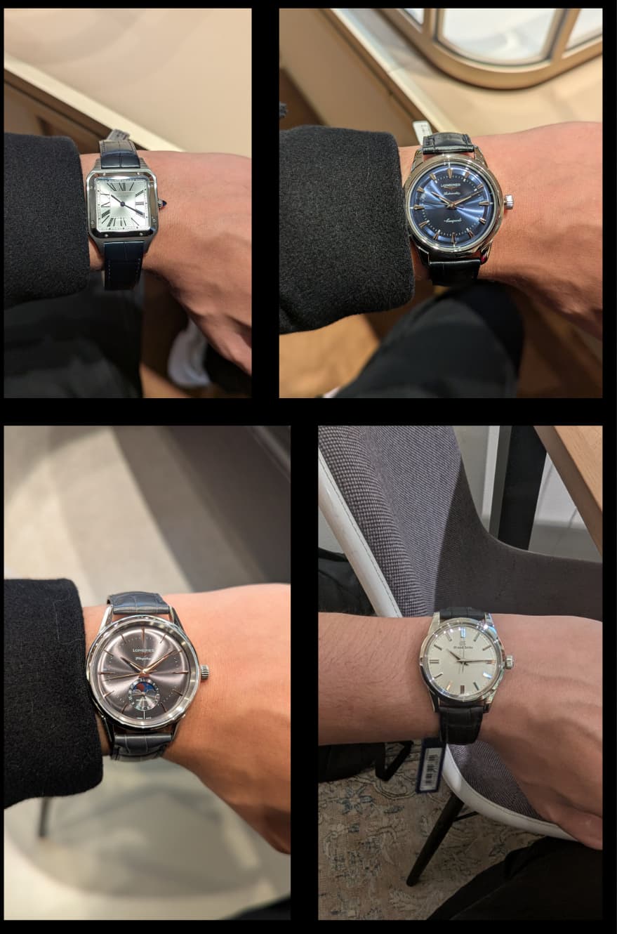 Hieronder heb ik een collage toegevoegd van horloges die ik al heb gepast. Elk horloge heeft zijn eigen pro’s en cons en de merken waarop ik mij vooral heb georiënteerd zijn Longines en Grand Seiko.