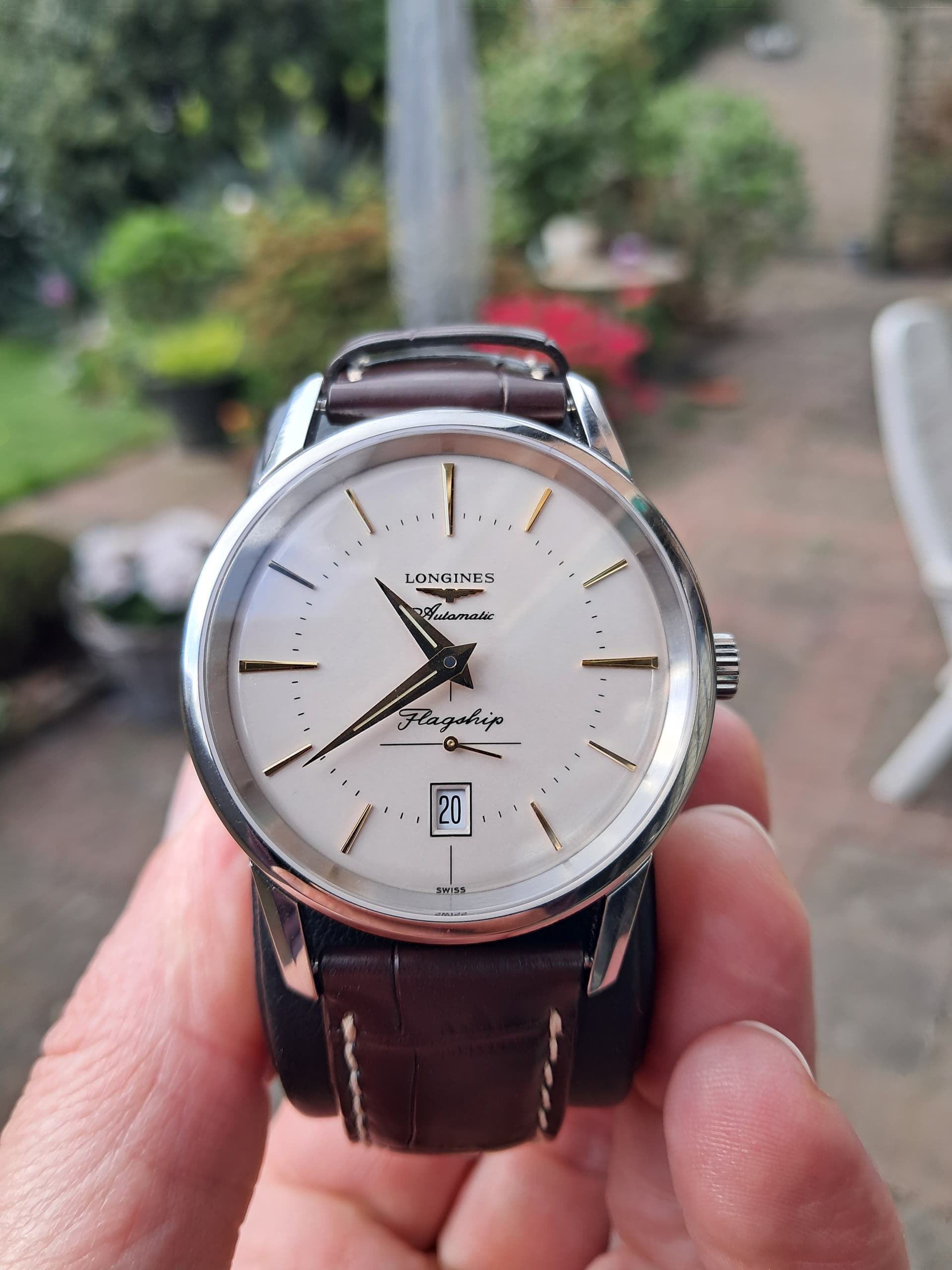 Ik had al een tijdje mijn zinnen gezet op een Longines flagship met champagne wijzerplaat en had gezien dat ze die bij een plaatselijke juwelier daar in het dorp verkochten.