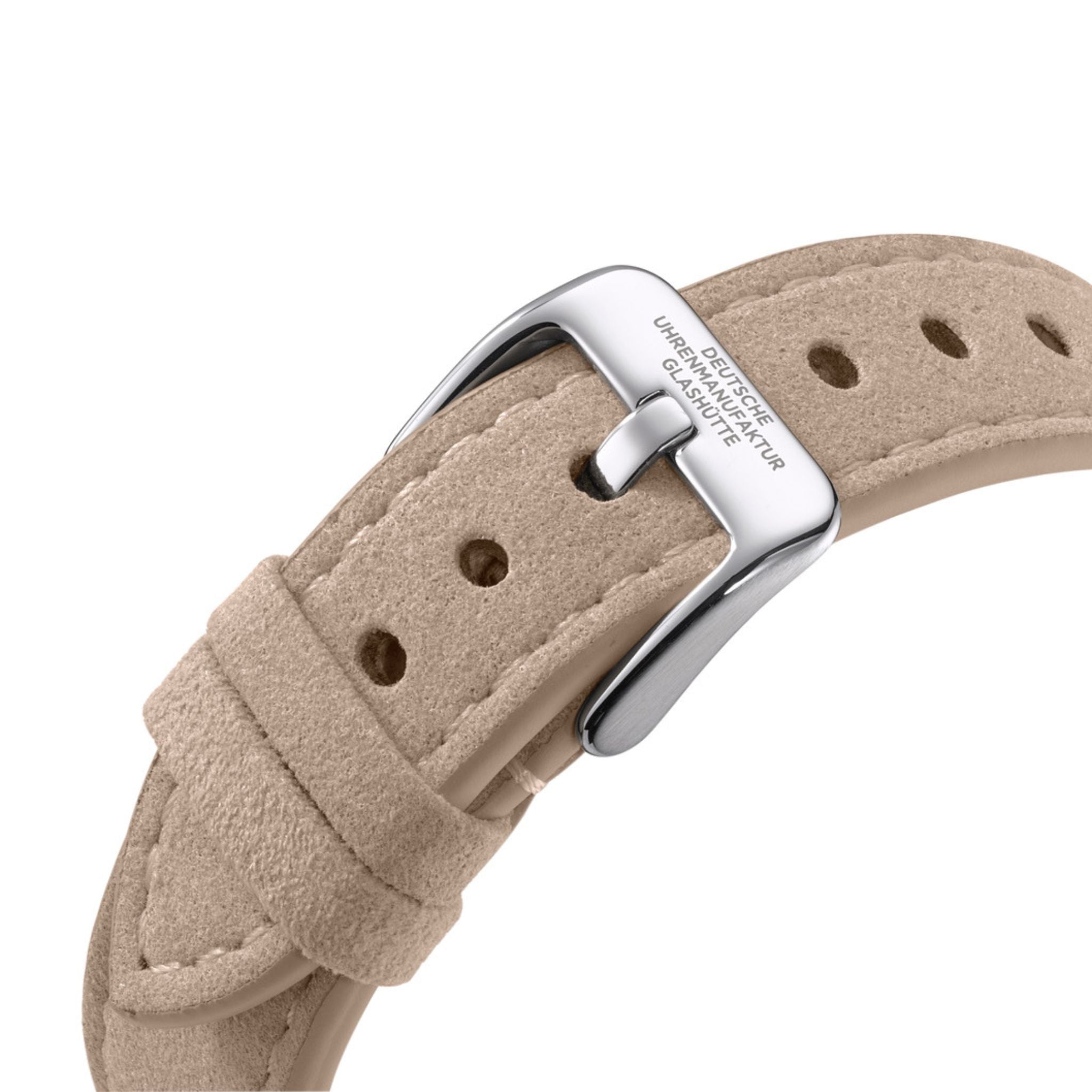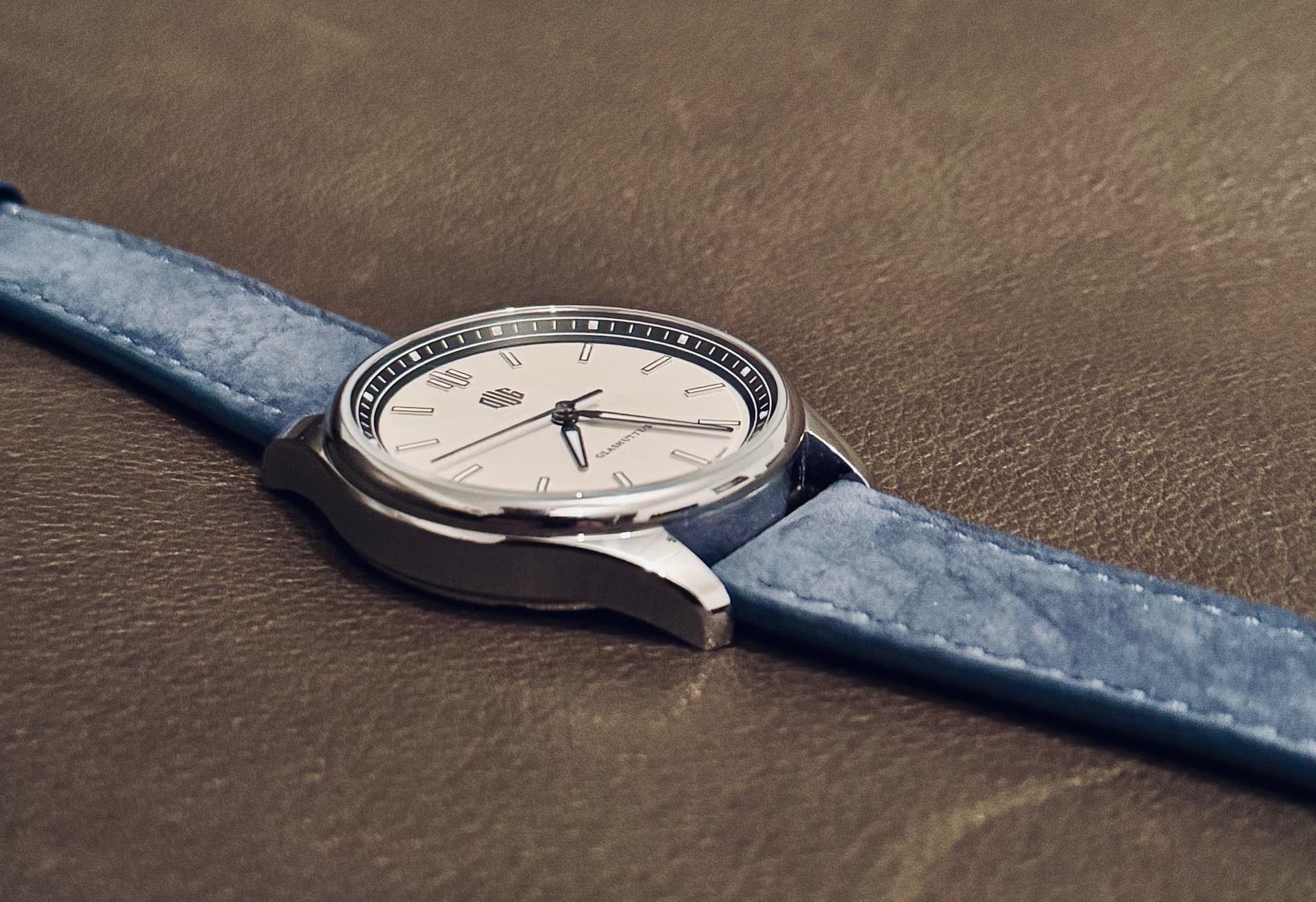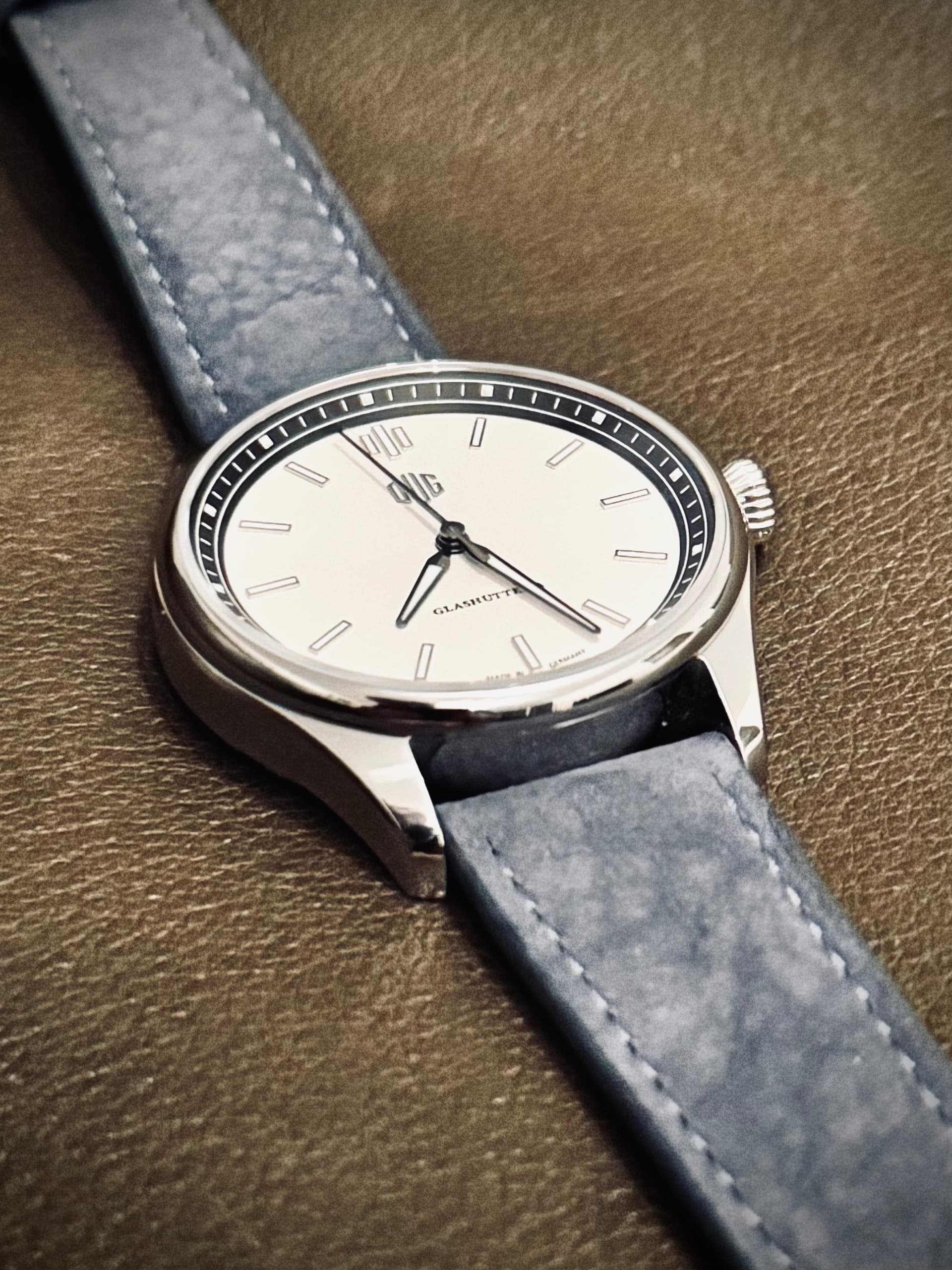 Vandaag dit bijzonder prettig dragende bandje op de DUG gezet. Het nubuck speelt prachtig met het licht: in de zon oogt het fris en licht, terwijl het bij avondlicht warmer wordt, voller van kleur, met een subtiele grijszweem. Het leer leeft echt, elke lichtval geeft het een andere uitstraling.