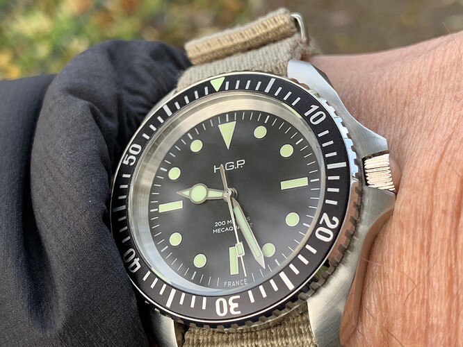 Heb nu sinds een week of drie de HGP en het is echt een leuk ding, zeker voor de prijs. Ik vind deze qua wijzerplaat en wijzers mooier dan de andere twee. Geen datum en een accu, heerlijk. Tropic band heb ik wel gelijk weggedaan.