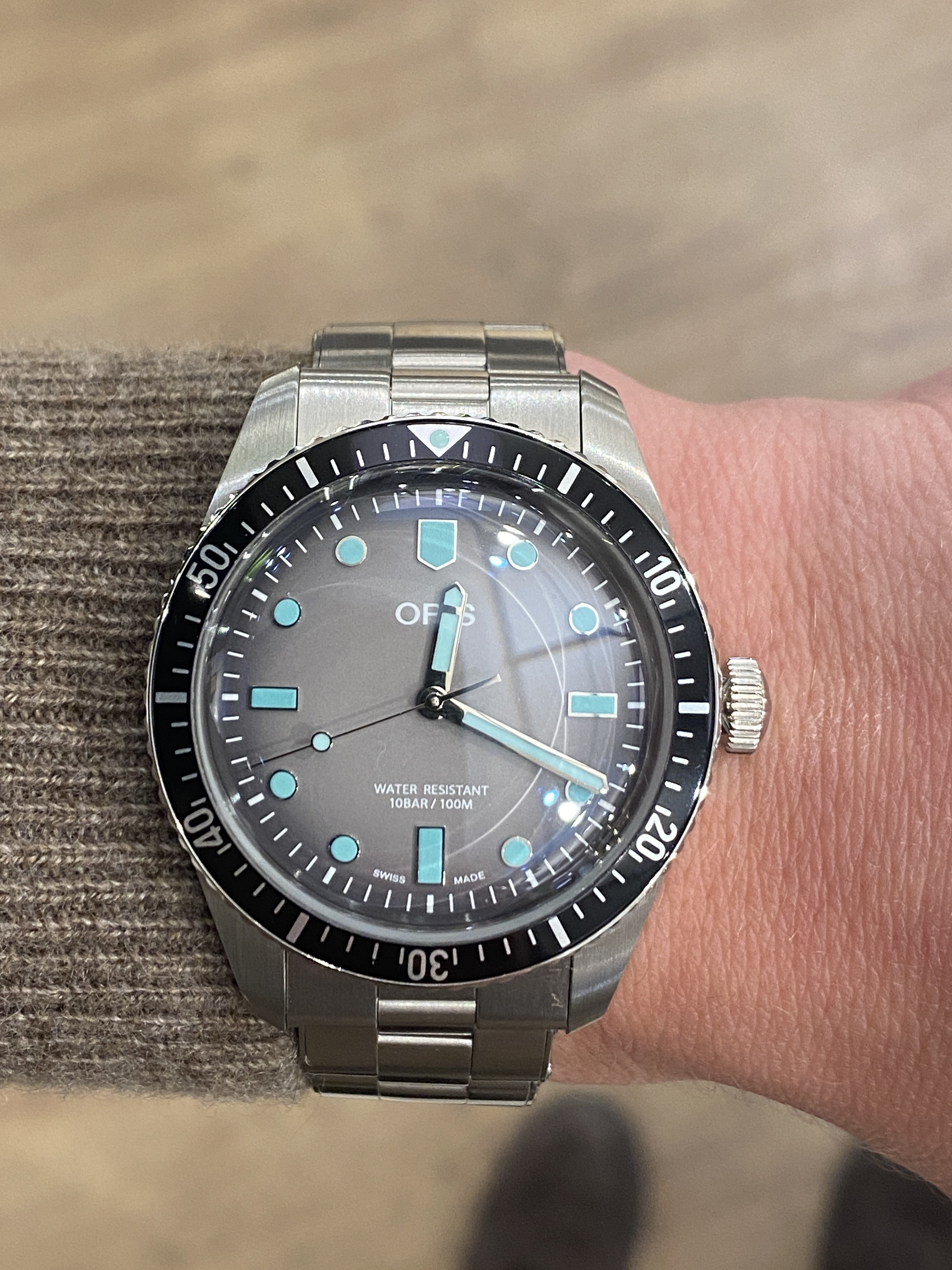 Dik  Erg mooie duiker heb je daar om de pols. Tijdje terug alweer heb ik hem ook gepast… ondanks de size draagt hij