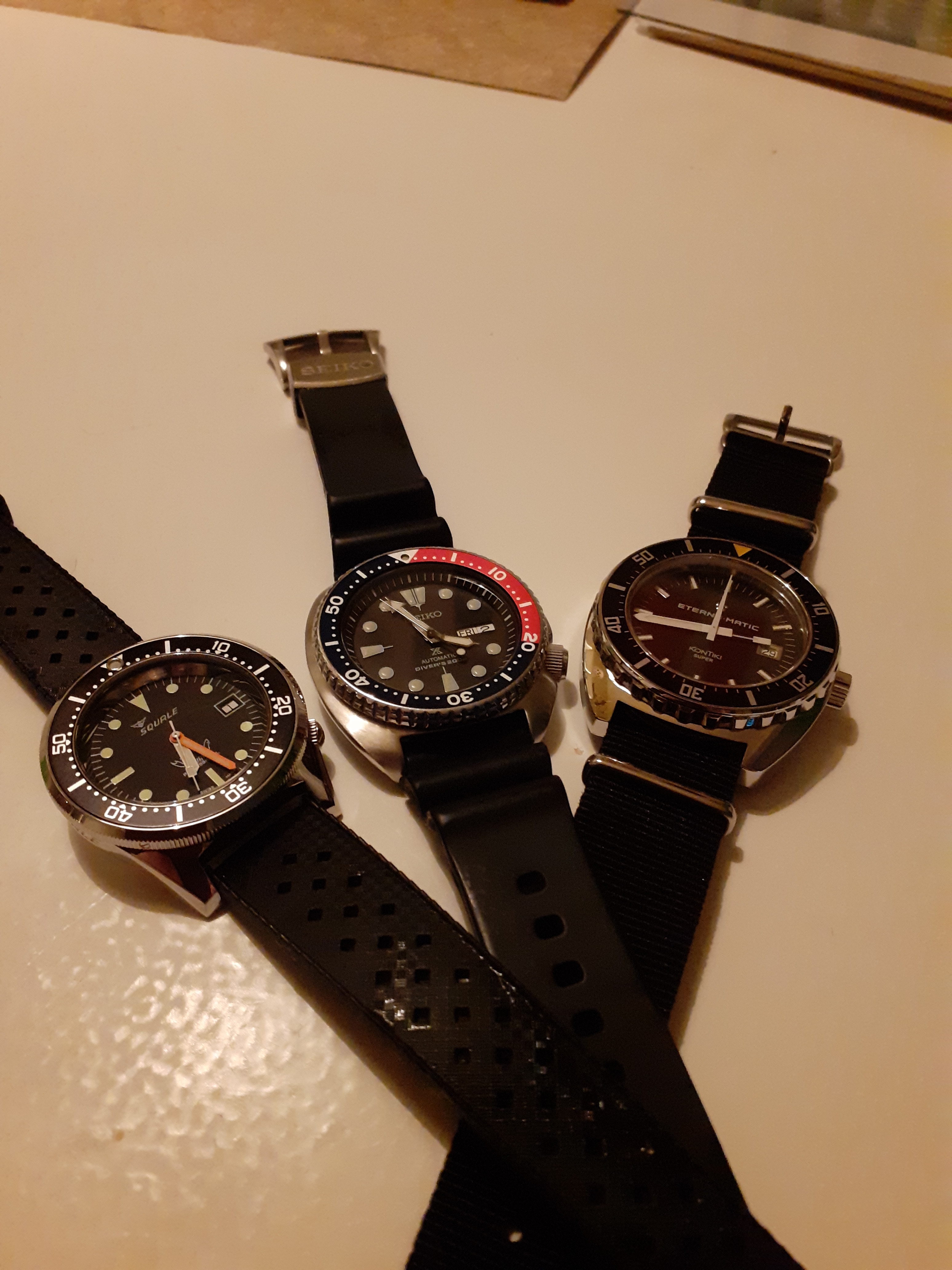 Ik heb er maar 3 (als de heuer mee telt). Vind duikers altijd fantastisch om te zien en te hebben, maar aangezien ik nog kinderpolsjes passen ze niet altijd goed. Maar deze (vooral de 62mas) dragen best goed! En geen idee of je de Heuer een duikhorloge mag noemen, maar er zit een duikring en een duik extensie op. En mijn opa droeg hem ook vaak als hij ging zwemmen in de zee.