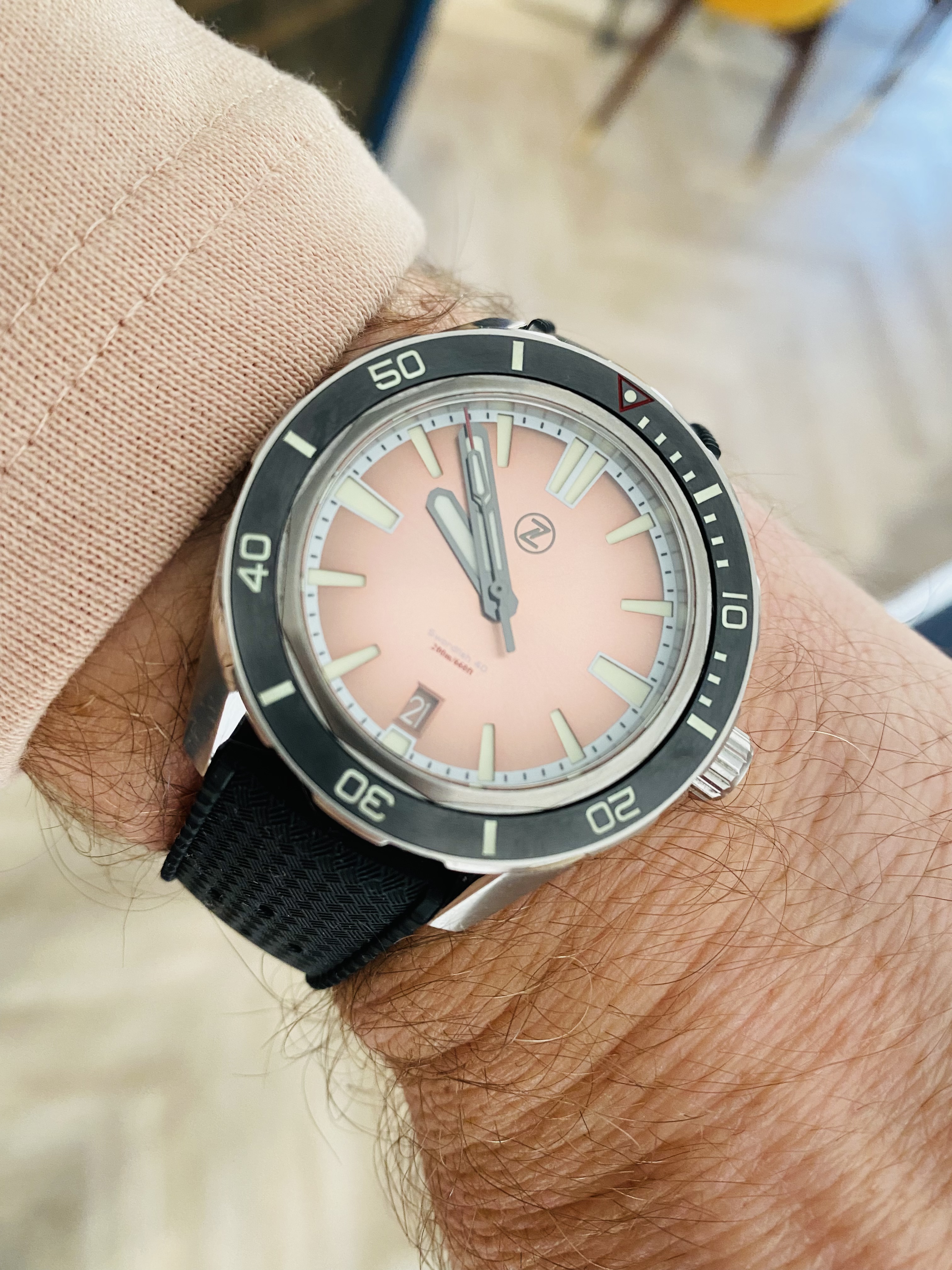 Ik blijf dit een van de beste Seiko Monster gen3 homage vinden. De gele wijzerplaat maakt je vrolijk op deze grauwe dagen en die prima lume is al best snel nodig aangezien het al om 18:00 nacht is. Maximale pangpang voor 169 dollartjes.