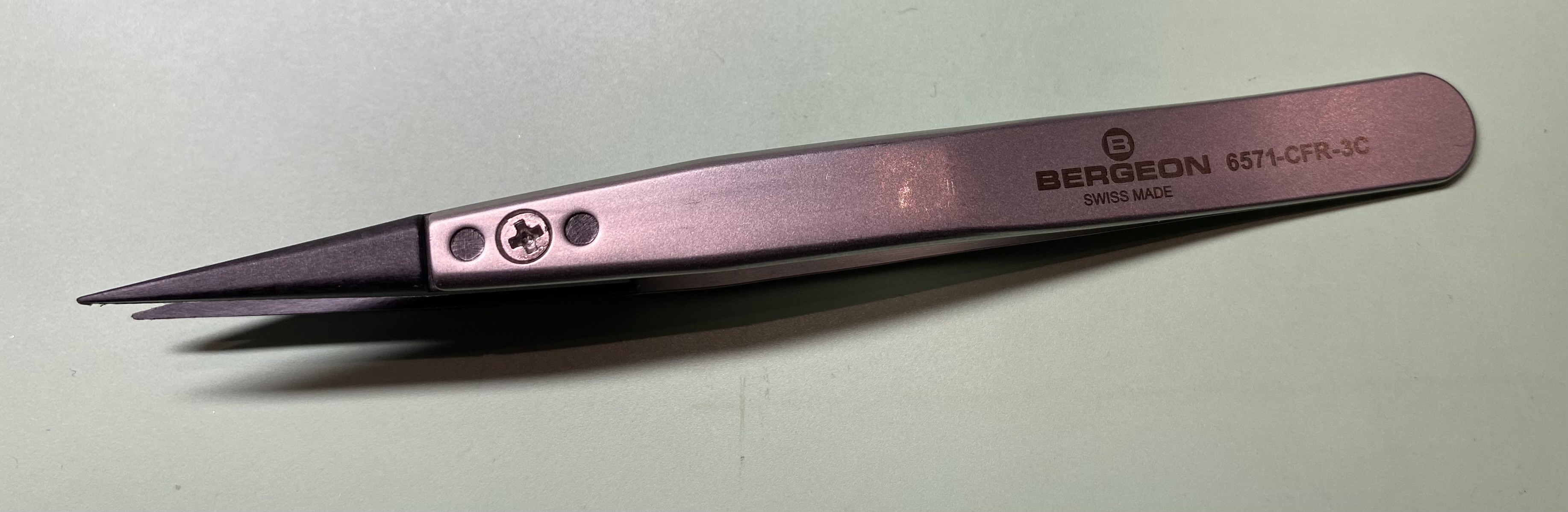 Ik zou beginnen met een goedkope messing #3 pincet. Je kunt korrel 400 en 800 schuurpapier gebruiken om de tip mooi strak te houden. Korrel 400 om de binnenkant van de 2 bekken meer grip te geven door er 1 of 2x loodrecht de pincet overheen te trekken. Bovenstaande oplossing kost bijna niets en gaat je een gevoel geven hoe je je pincet het liefs hebt en kunt onderhouden. Volgende stap is een duurder exemplaar van bv brons. Is veel harder vergeleken met messing en gaat jaren mee. Onderhoud blijft uiteraard wel nodig. Een goede symmetrische en scherpe punt zijn een pre om kleine onderdelen vast te kunnen pakken, zelf werk ik meestal met een bronze #3.