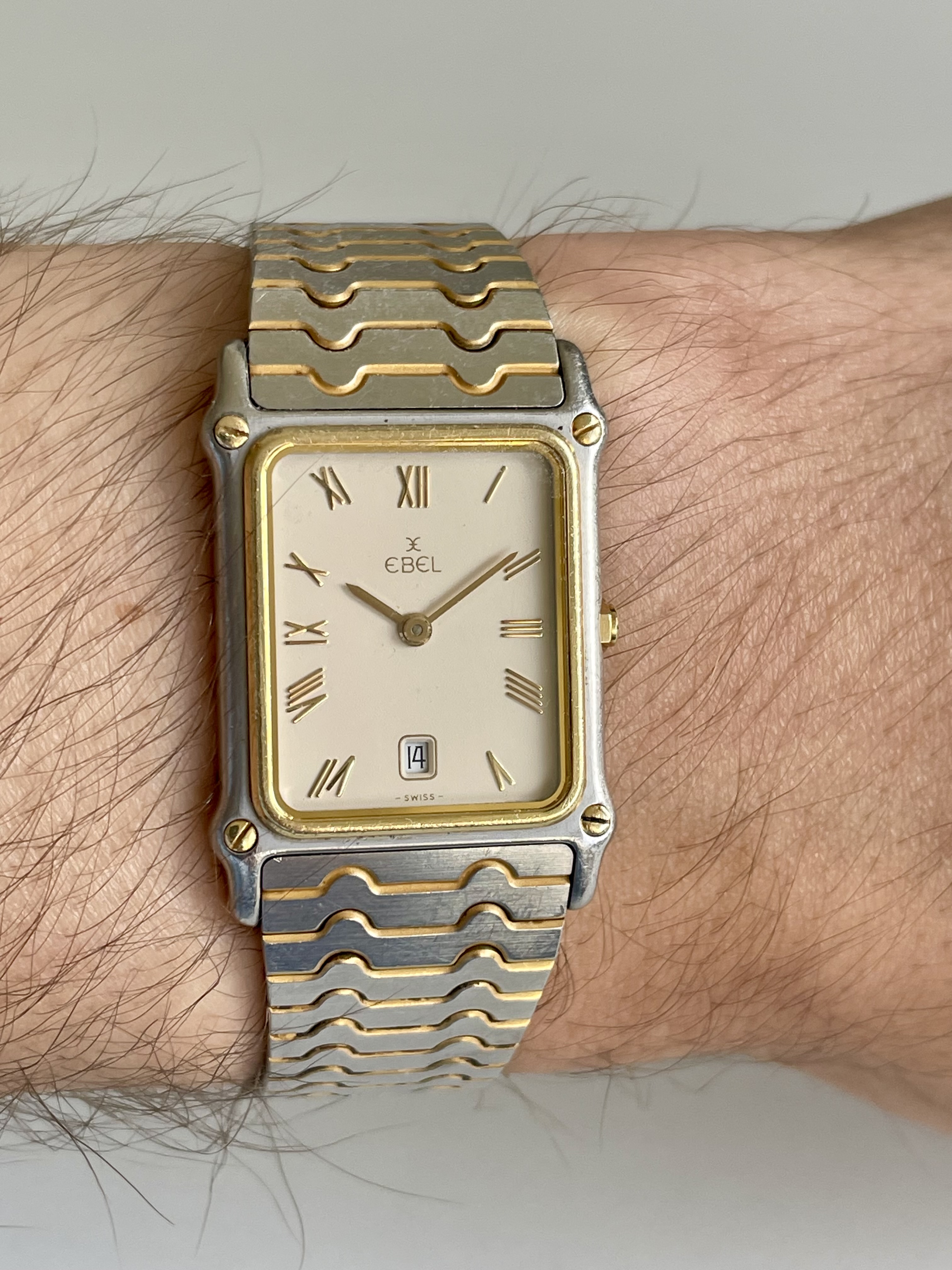 Ik ben grote opruiming aan het houden en ook deze Ebel moet daarom vertrekken. Dit is de vrij zeldzame Tank of rectangular versie van de Ebel classic. Deze is veel minder voorkomend dan de ronde modellen.